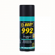 Грунт-аэрозоль 992 черный антикорозийный BODY ( 0,4л ) на основе алкидной смолы, относящийся к 1К–системе. Предназначен для местного применения. После рекомендуемой сушки обеспечивает надежную антикоррозийную защиту металла. Подлежит покрытию акриловыми грунтами, алкидными и нитроцеллюлозными красками. Превосходно защищает от влаги и соли, а также обладает стойкостью к механическим, химическим и атмосферным воздействиям. Не содержит хлорат цинка. Благодаря максимально быстрому высыханию и простоте нанесения является оптимальным материалом для самостоятельного применения.