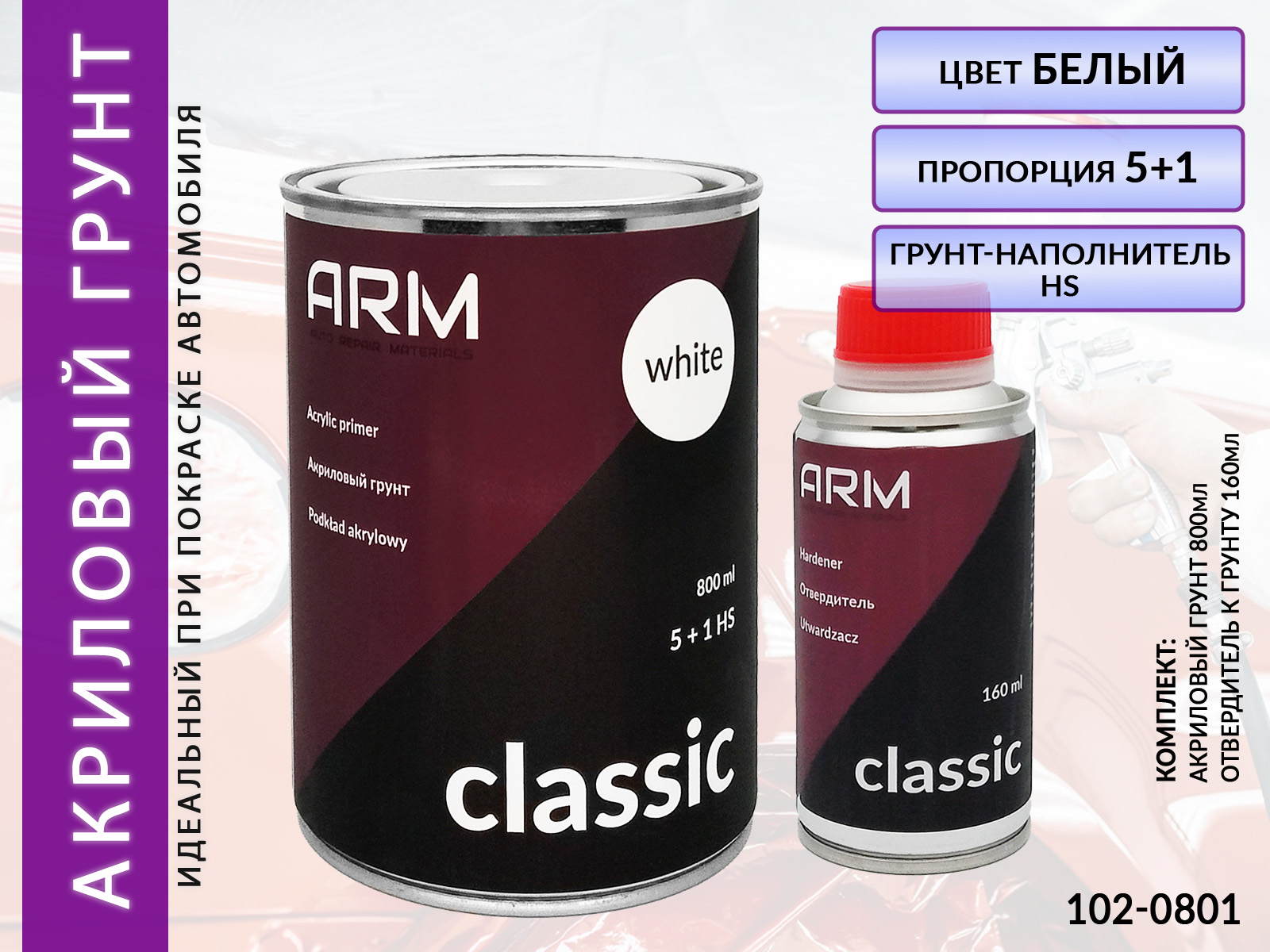 Грунт 5+1 белый акриловый с отвердителем CLASSIC ARM (0,8л+0,16л)