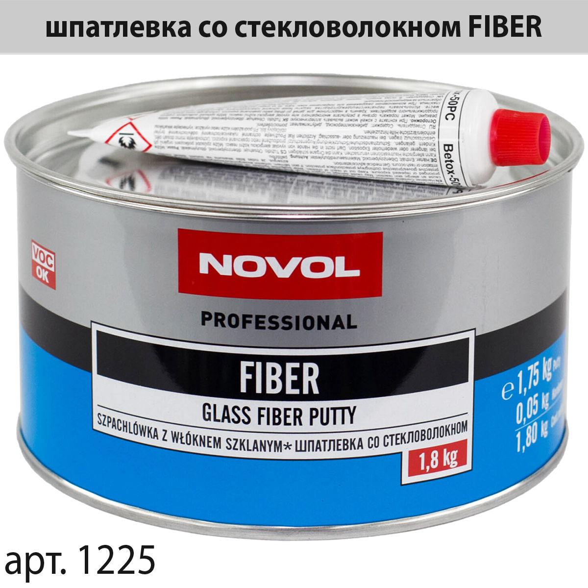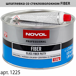 Шпатлёвка FIBER NOVOL (1225) усиленная стекловолокном применяется при кузовном ремонте транспортных средств, а также в производстве металлоконструкций. Шпатлевка Fiber Novol, благодаря добавке имеет высокую механическую прочность и обладает хорошей способностью к заполнению неровностей и отверстий. Однако, связанные с этим низкая эластичность и высокая твёрдость при обработке, ограничивают её применение до небольших площадей поверхности.