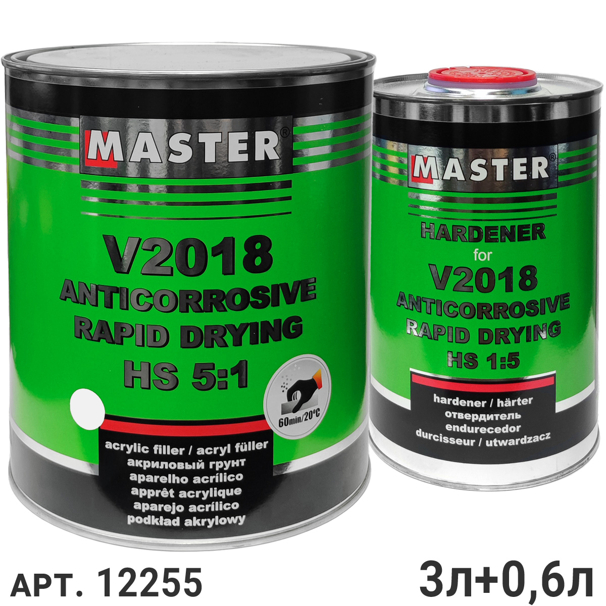 Высококачественный быстросохнущий двухкомпонентный антикоррозионный акриловый грунт-наполнитель V2018 MASTER TROTON с отличной адгезией к стали, алюминию, оцинкованной стали, полиэфирным шпатлёвкам и старым лакокрасочным покрытиям. Короткое время отверждения делает грунт V2018 идеальным решением для быстрого кузовного ремонта. Высокое содержание смол (грунт класса HS) и используемых добавок обеспечивают очень хорошее заполнение, антикоррозионную защиту и отличное качество поверхности. Грунт совместим как с сольвентными так и с водными базовыми красками. Грунт готов к шлифованию уже через 60 минут после нанесения при темперетуре окружающей среды 20°C! В комплекте с грунтом идет отвердитель!