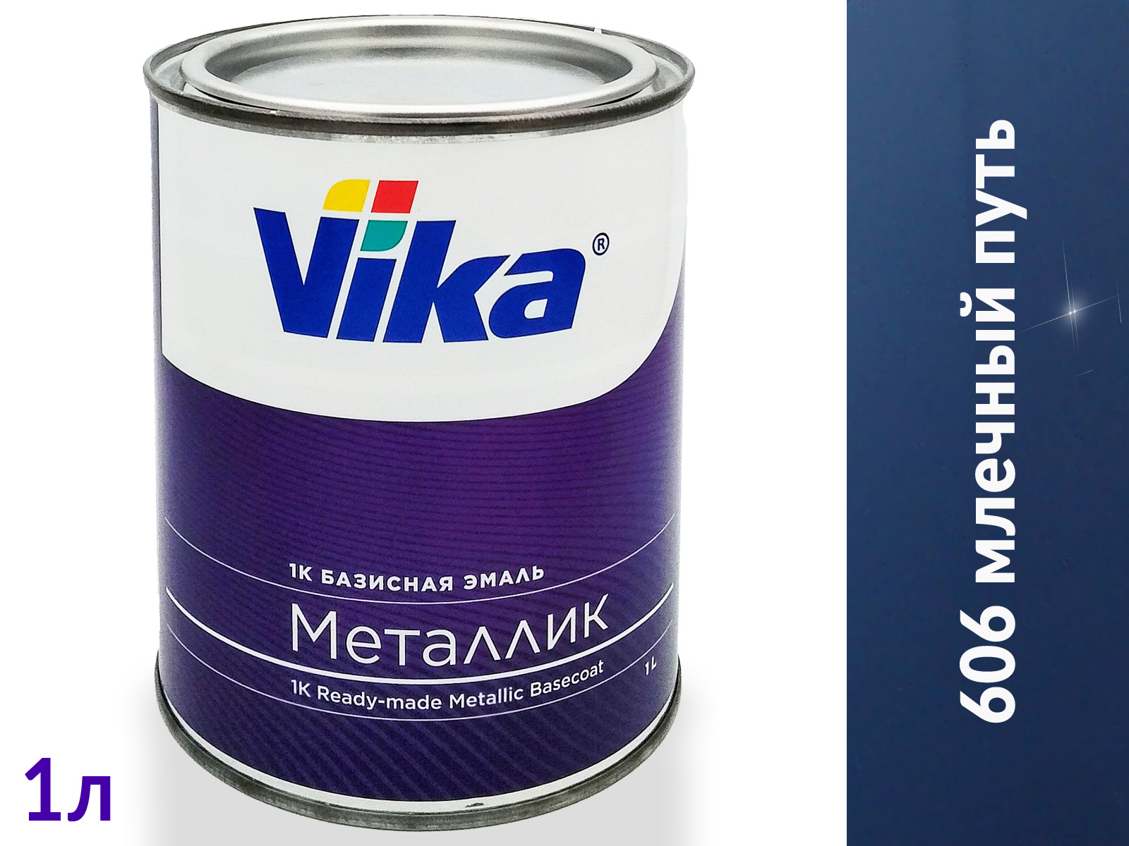 606 млечный путь металлик автоэмаль ПЛ-1348 VIKA (1л) предназначена для окраски загрунтованной и зашлифованной поверхности в комплексе с прозрачным лаком. Автоэмаль металлик обеспечивает декоративные свойства, а лак обеспечивает механическую стойкость и защиту от атмосферного воздействия и выгорания. Автоэмаль металлик перед использованием следует тщательно перемешать и разбавить до рабочей вязкости разбавителем для металликов. Окрашиваемую поверхность рекомендуется зашлифовать механически абразивом Р400-Р500 или же вручную абразивом Р800-Р1000. Разбавленная до рабочей вязкости эмаль наносится в 2-3 слоя краскораспылителем с дюзой 1,2-1,4 миллиметра с межслойной выдержкой 15 минут. Сушка покрытия базисной эмали до нанесения лака должна составлять 20-30 минут при естественных условиях. После обработки поверхности липкой салфеткой для устранения опыла, пыли и ворса, необходимо нанести 2К акрил-уретановый лак VIKA HS.