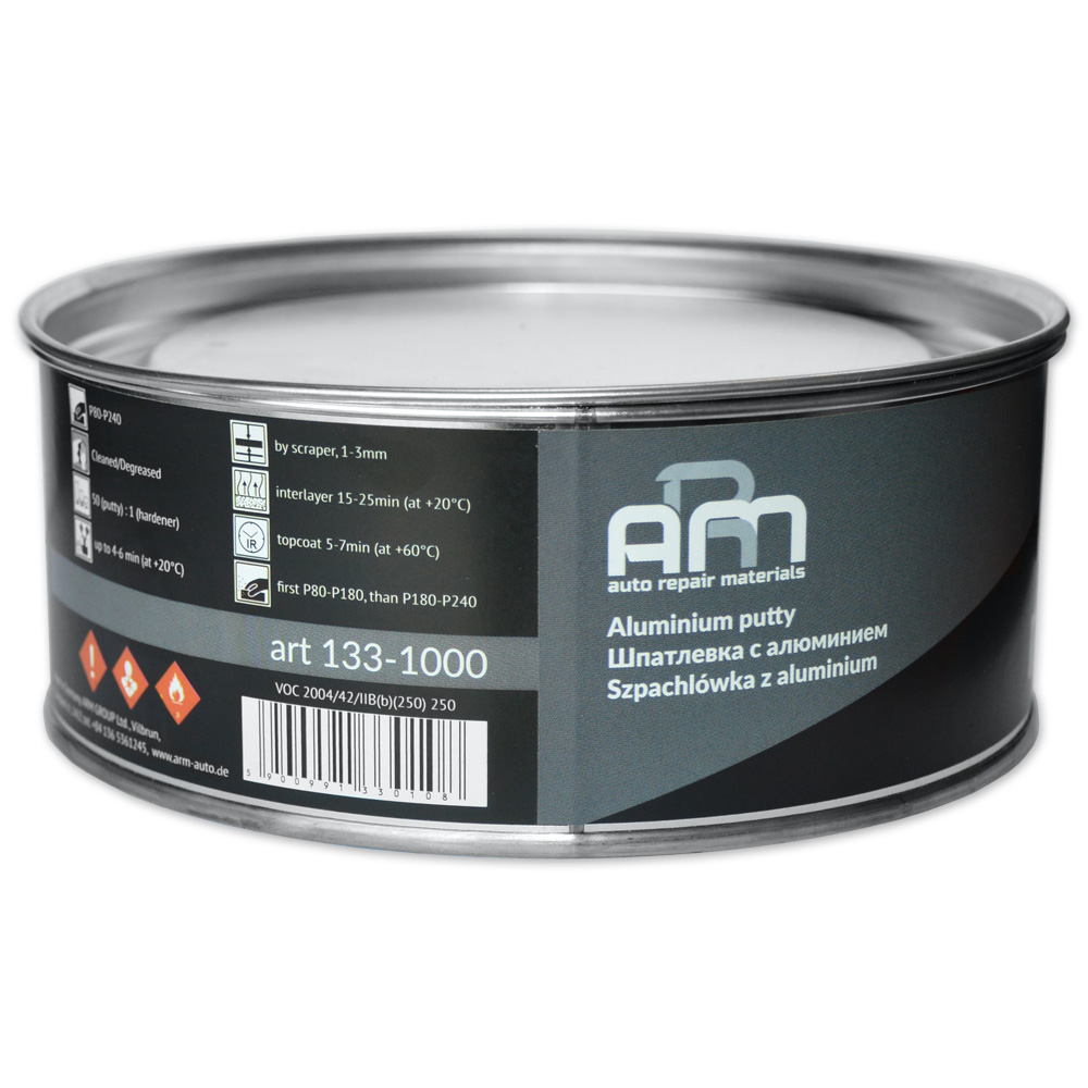 Шпатлевка METALLIC ARM (133-1000) предназначена для выравнивания поверхностей при кузовном ремонте транспортных средств или любых других металлических элементов. Обладает отличной стойкостью к механическим нагрузкам и высоким температурам, превосходной адгезией к металлу и алюминию. Минимальная усадка и высокая эластичность позволяют использовать шпатлевку для заполнения больших неровностей.