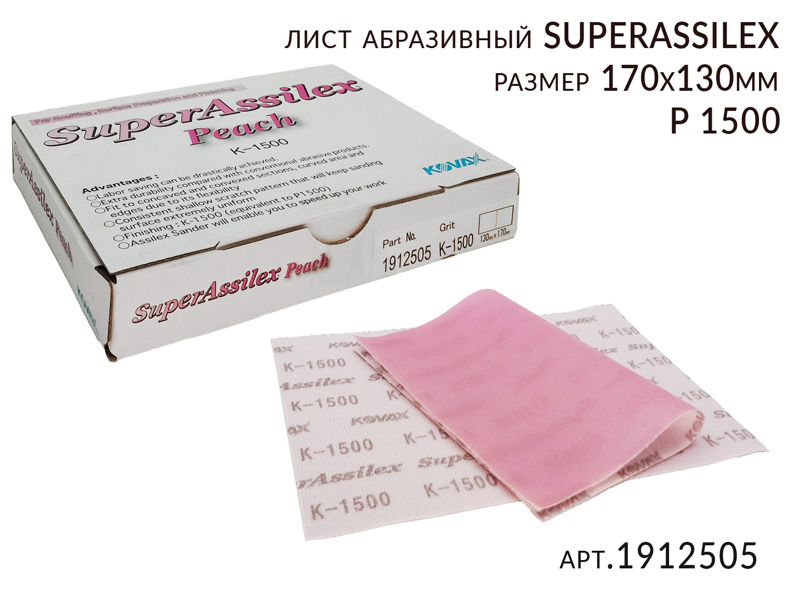 Лист абразивный K1500 170х130мм персик SUPERASSILEX KOVAX