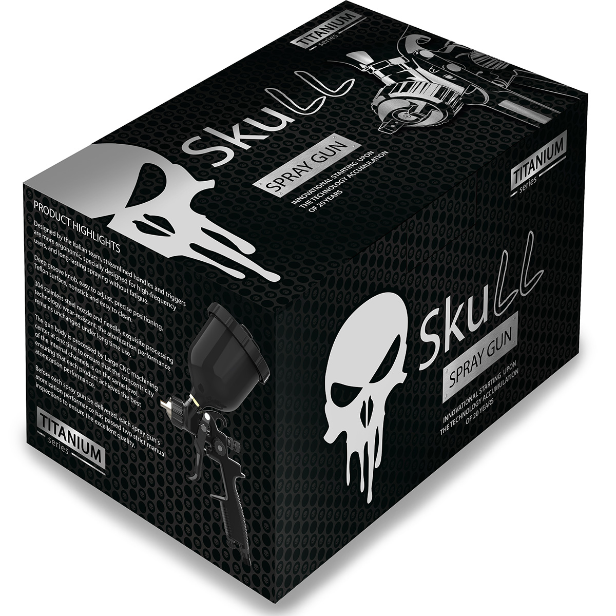 Краскопульт серии TITANIUM от SKULL (20120) c технологией RRP подходит для маляров, которые привыкли к высокоэффективному распылению. Разработанный итальянской командой дизайнеров краскопульты эргономичны, удобны для регулярной работы, способствуют сохранению режима работы без усталости. Легкая регулировка, удобный хват с рельефом. Тефлоновая поверхность легко чистится. Сопло и игла из нержавеющей стали типа 304.