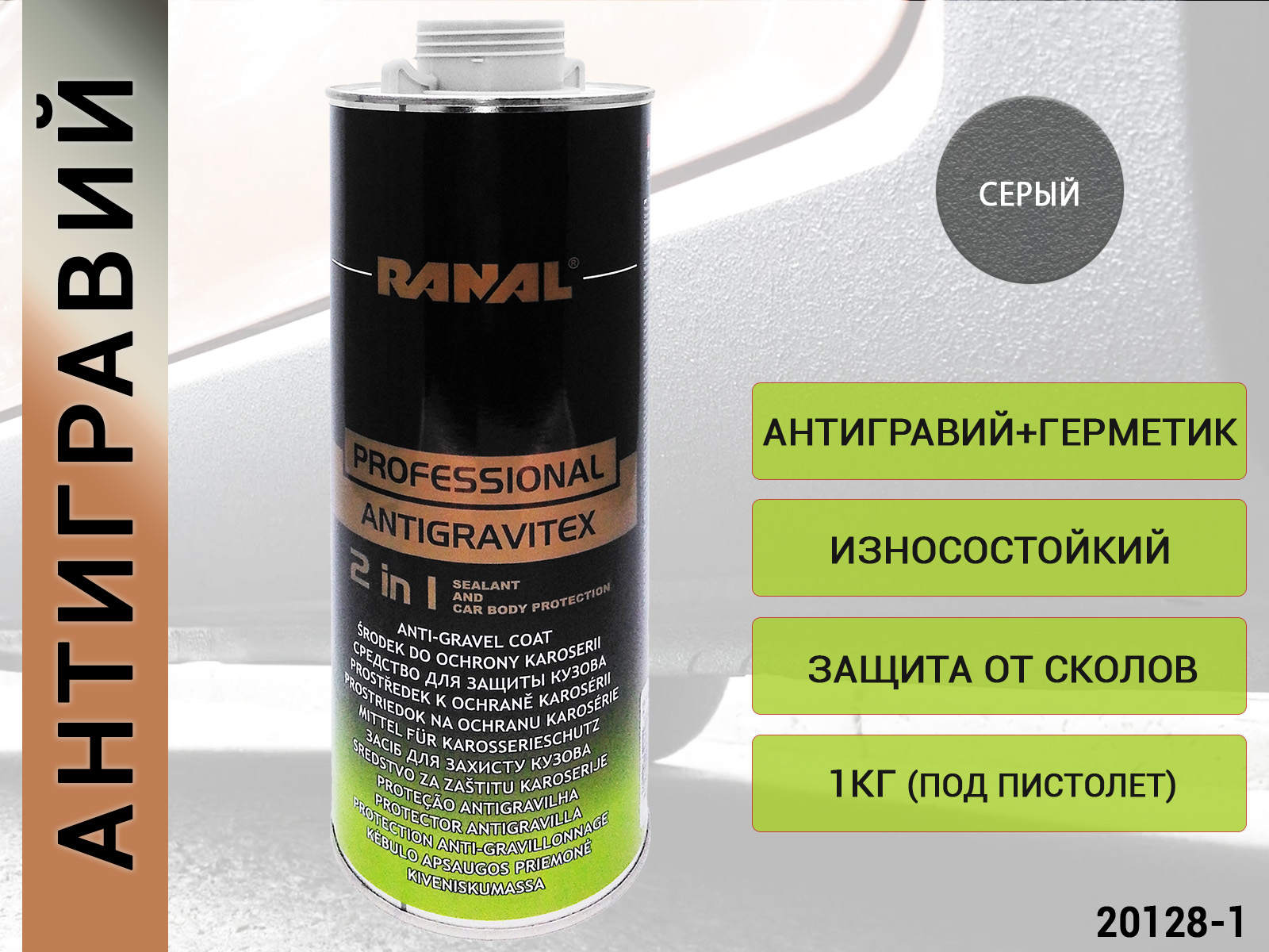 1. антигравий-герметик "2 в 1" СЕРЫЙ под пистолет RANAL (1л)1