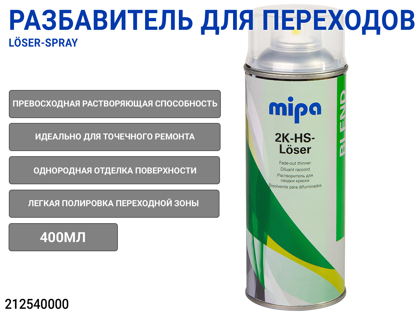 Спрей разбавитель для переходов 2K HS Loser 400мл - представляет собой специальную смесь на основе растворителей для растворения напылений при точечном ремонте или при смешивании 2K-HS покрытий.