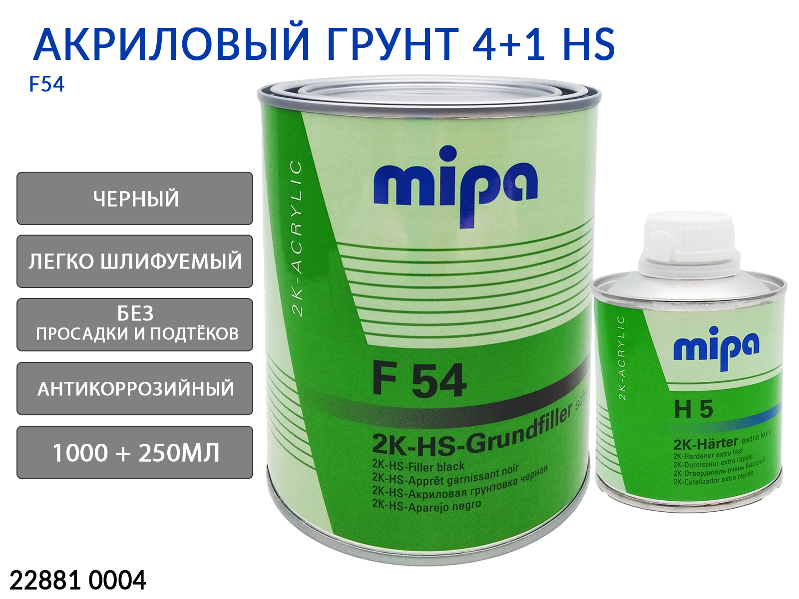 1. Грунт черный F54 HS акриловый MIPA (1л), артикул 22881 00041