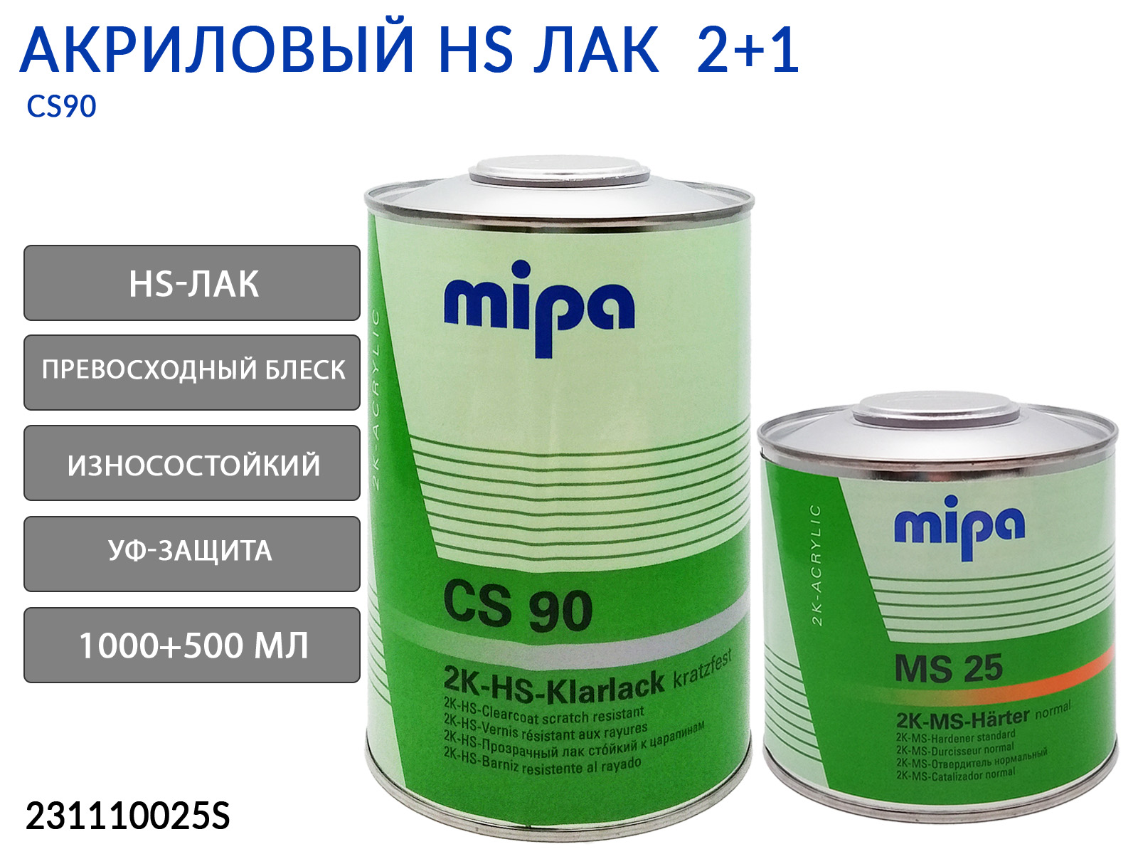 1. Акриловый лак CS90 MIPA (1л), 23111 0025S1