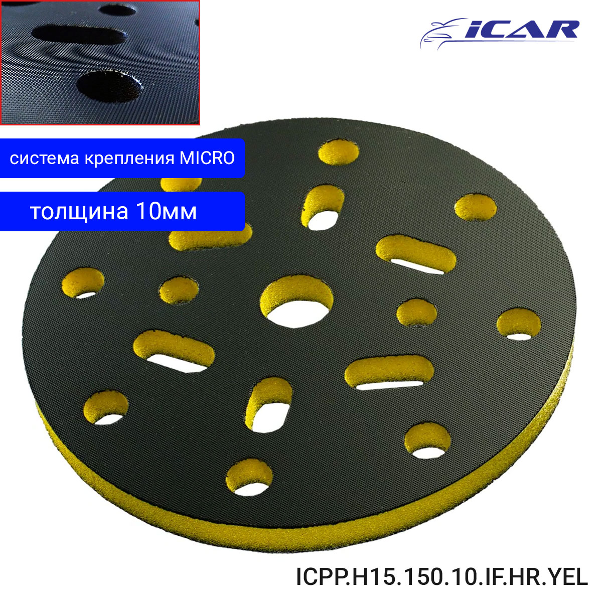 Диск-подкладка под круг 150мм 15 отверстий MICRO ЖЕЛТАЯ жесткая толщина 10мм ICAR