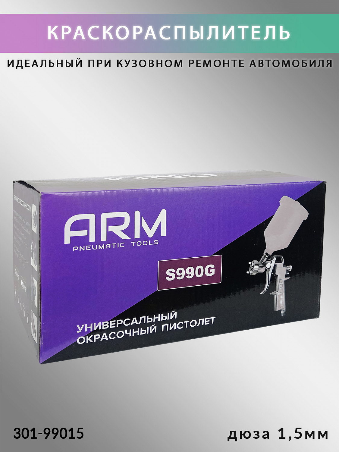 Краскораспылитель S990G ARM (301-99015) предназначен для нанесения лакокрасочных материалов при проведении малярных и кузовных работ. Обеспечивает равномерное распыление краски, лака или грунта с минимальными потерями материала.