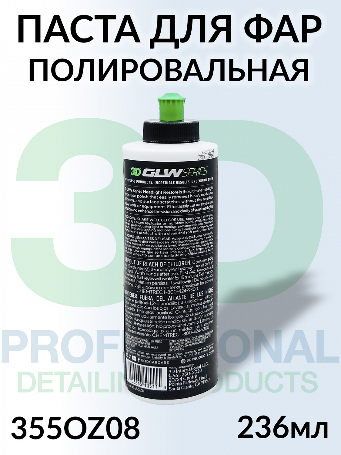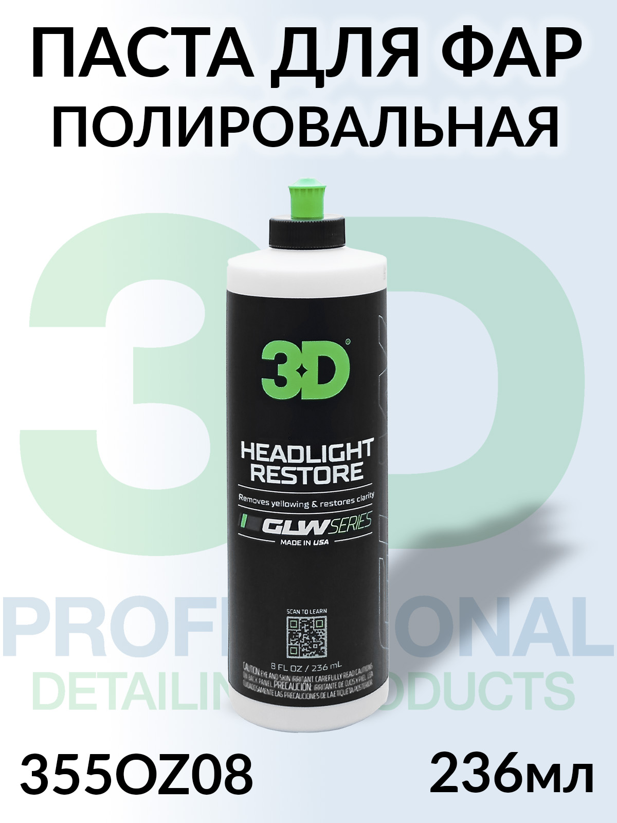 Паста полировальная для пластиковых фар HEADLIGHT RESTORE серии GLW 3D (236мл)
