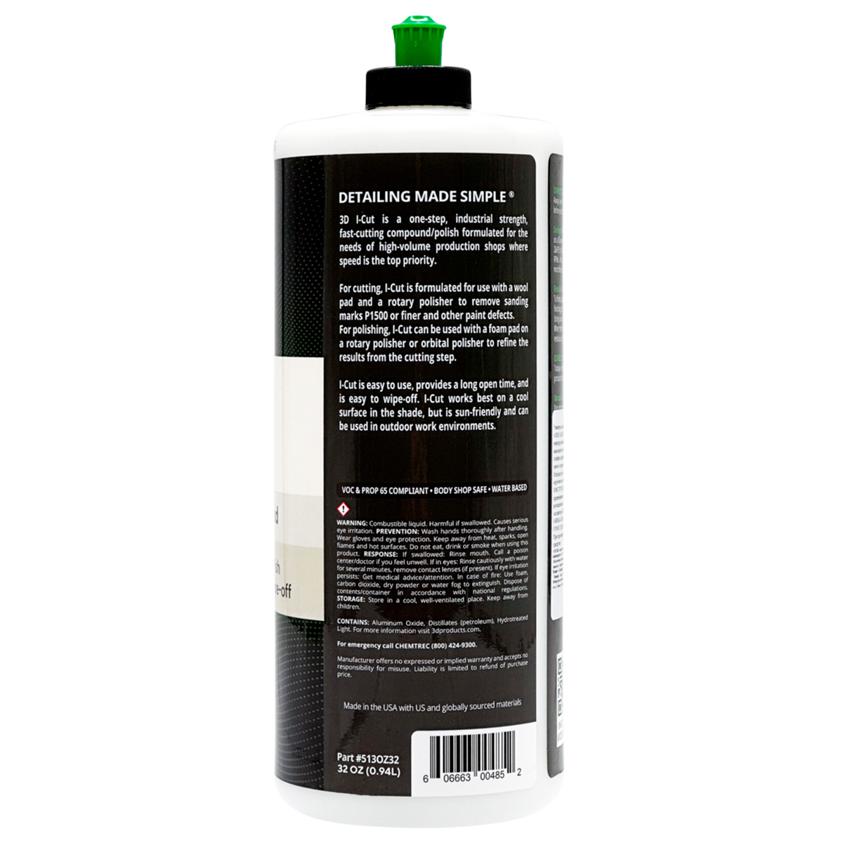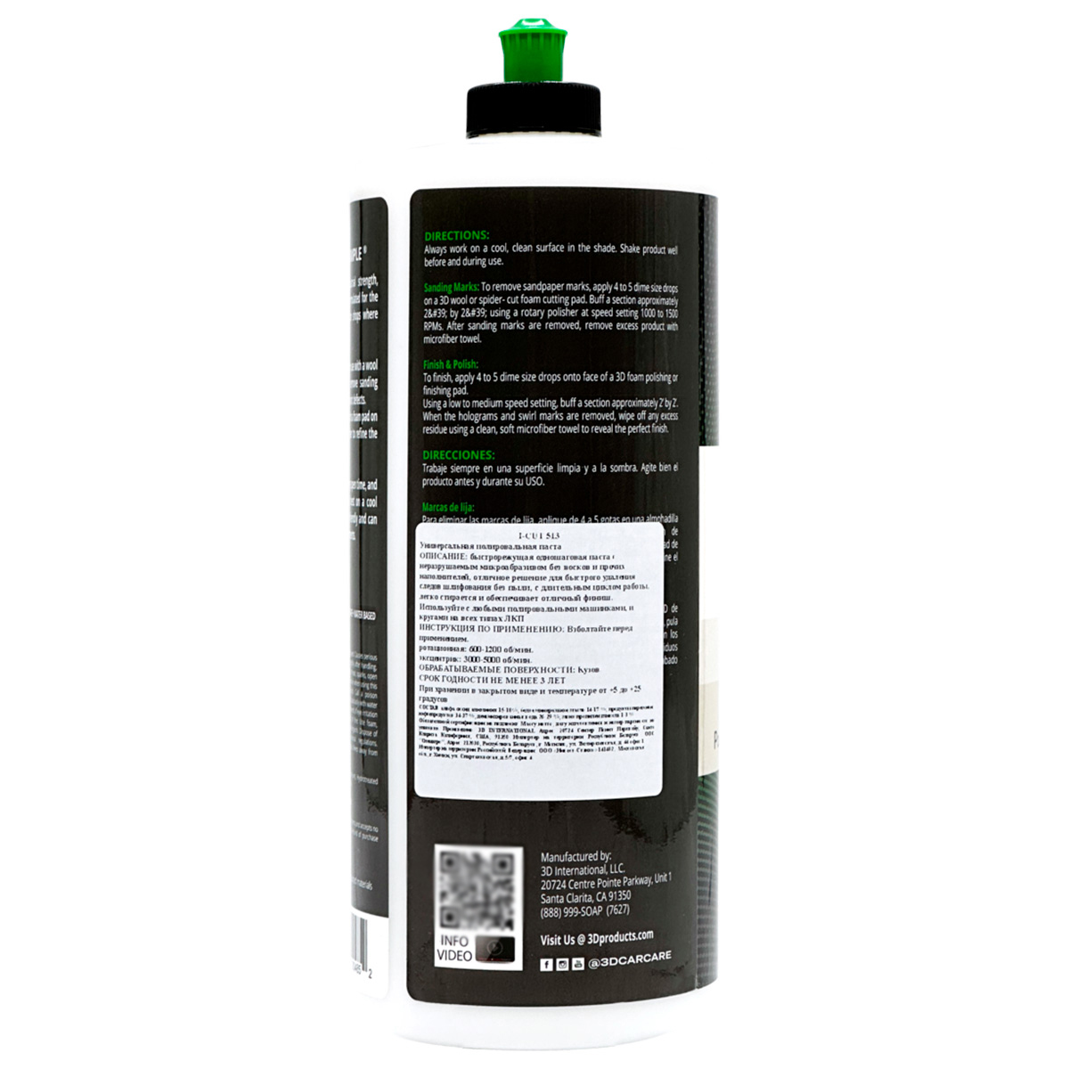 Полировальная паста I-CUT 513 от 3D Car Care - быстрорежущая одношаговая паста с неразрушаемым микро-абразивом без восков и прочих наполнителей. Отличное решение для быстрого удаления следов шлифовки без пыли, с длительным циклом работы там где скорость и эффективность являются главным приоритетом. Легко стирается и обеспечивает отличный финиш. Используйте с любыми полировальными машинками и кругами (поролон и шерсть) на всех типах ЛКП. Удаляет следы шлифовки P1500 или более мелкой и другие дефекты ЛКМ.