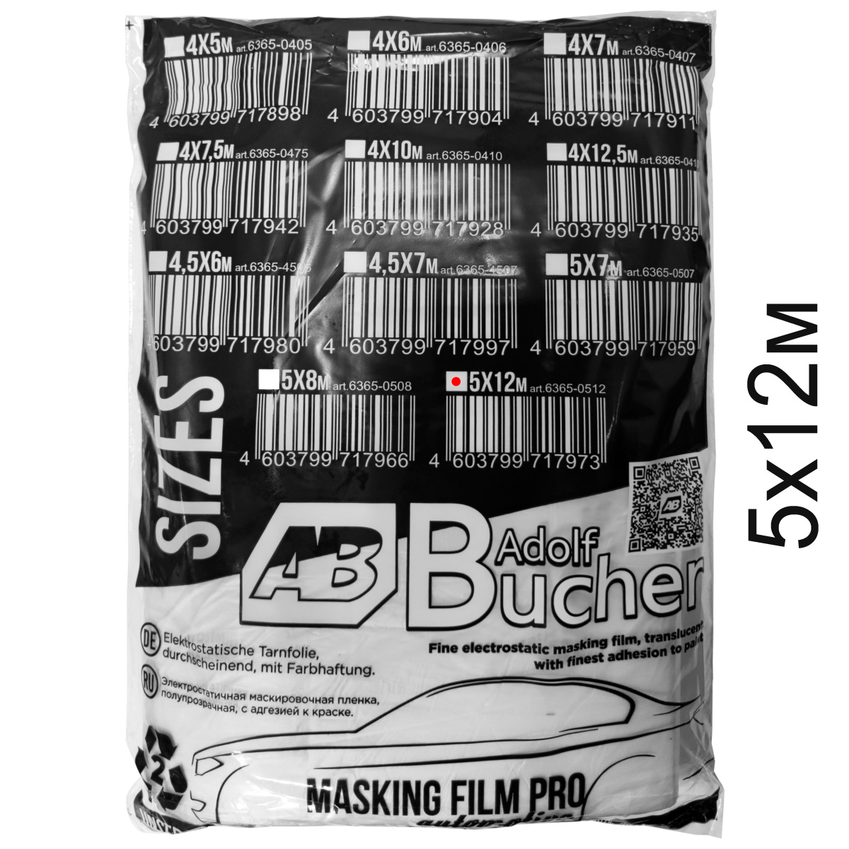 Пленка для маскировки поверхности автомобиля ADOLF BUCHER (6365-0512) применяемая при подготовительных и окрасочных работах. Для изготовления маскировочной пленки применяют специальные сорта полиэтилена, способные накапливать статический заряд, благодаря чему пленка легко прилипает к поверхности и не мешает работе.