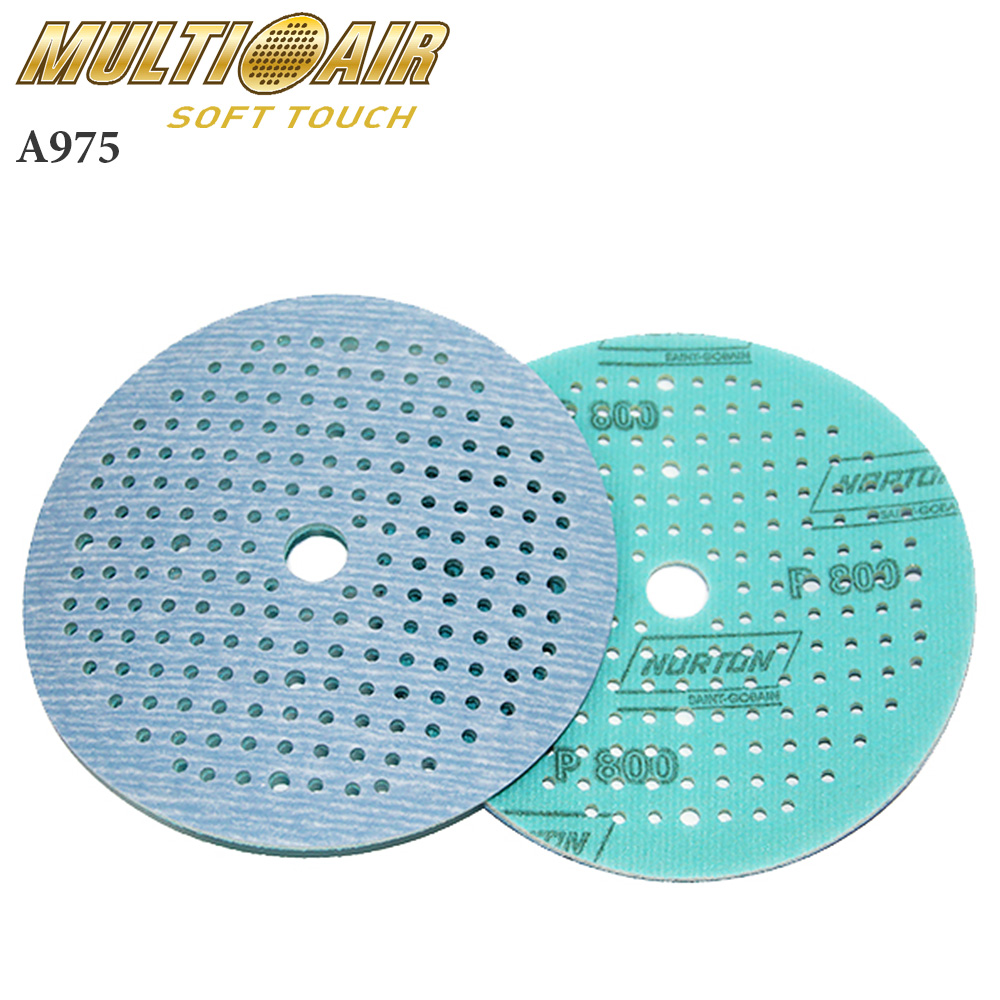 Абразивные круги Multi-Air Soft-Touch A975 NORTON изготовлены со специальным мягким поролоновым слоем на тыльной стороне и обладают высокой производительностью и исключительно длительным сроком службы, будучи непосредственно соединены с абразивной бумагой. Поролоновый слой легко выбирает любые перепады поверхности, поддерживая очень однородное снятие слоя и высококачественную чистовую обработку поверхности. Помимо этого, оригинальная система Soft-Touch запатентованная фирмой NORTON, рассчитана для каждого вида применения. Разные цвета липучки для кругов разной зернистости облегчают использование кругов NORTON Pro Soft-Touch.