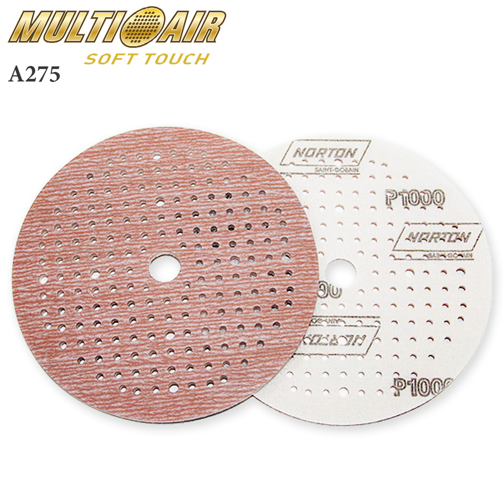 Абразивные круги Multi-Air Soft-Touch A275 NORTON изготовлены со специальным мягким поролоновым слоем на тыльной стороне и обладают высокой производительностью и исключительно длительным сроком службы, будучи непосредственно соединены с абразивной бумагой. Поролоновый слой легко выбирает любые перепады поверхности, поддерживая очень однородное снятие слоя и высококачественную чистовую обработку поверхности. Помимо этого, оригинальная система Soft-Touch запатентованная фирмой NORTON, рассчитана для каждого вида применения. Разные цвета липучки для кругов разной зернистости облегчают использование кругов NORTON Pro Soft-Touch.