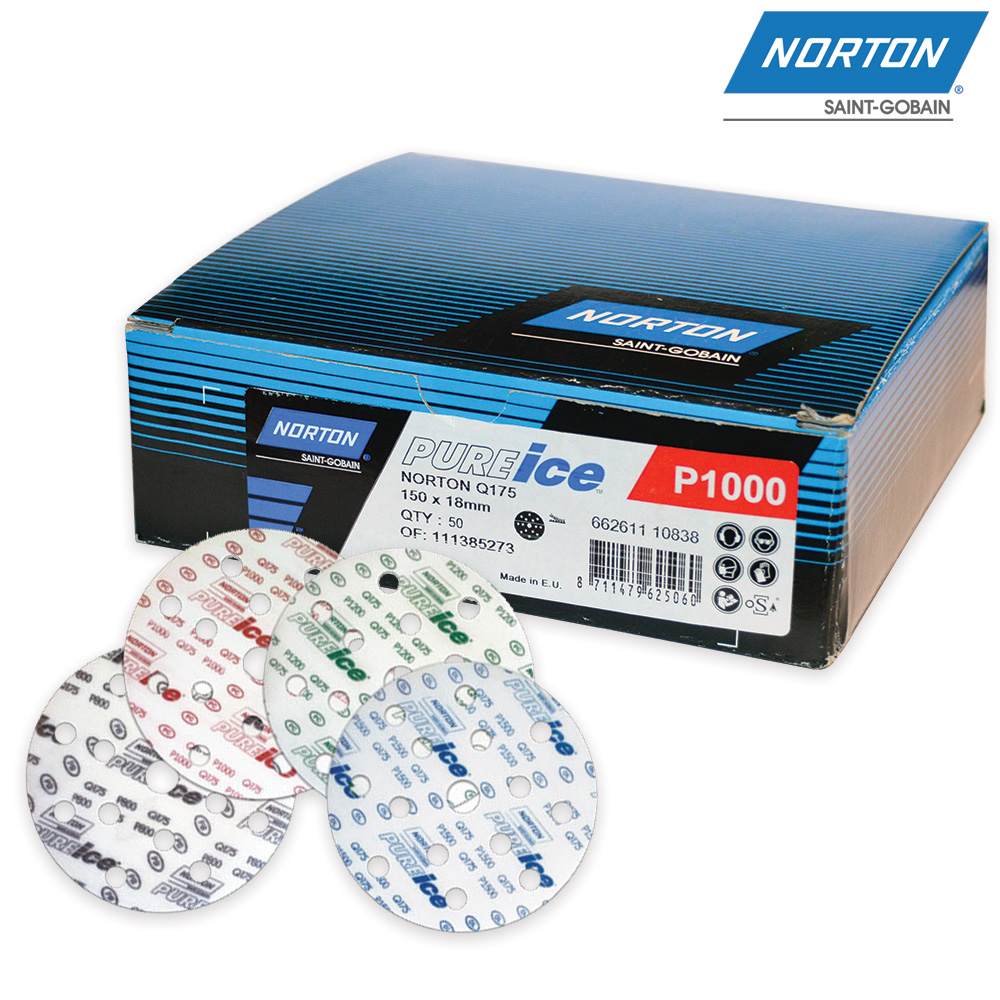 Абразивные круги P1000 PURE ICE Q175 NORTON (66261110838) - прочная, тонкая плёночная основа с премиальным абразивным зерном оксида алюминия по запатентованной технологии связки придает плоскостность поверхностям, противостоит засаливанию, обеспечивает долгий срок службы и оставляет однородную конечную поверхность для быстрой полировки. Благодаря великолепной оболочке No-Fil засаливание круга минимальное, что даёт в результате гораздо больший срок службы продукта.
