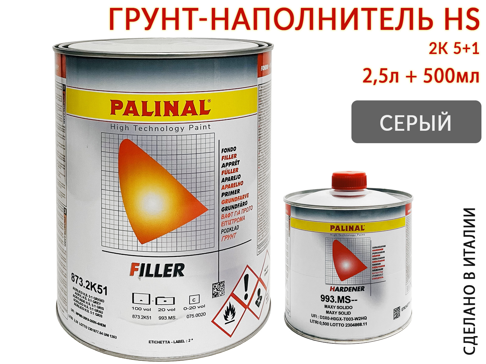 Грунт 5+1 серый HS акриловый с отвердителем 993MS PALINAL (2,5л+0,5л)