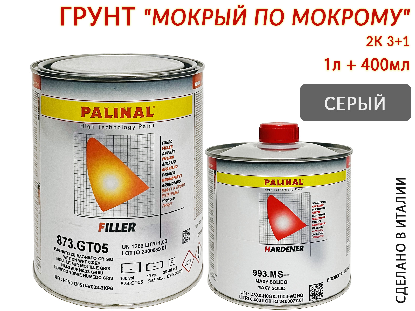 Грунт 3+1 серый "мокрый-по-мокрому" с отвердителем 993MS PALINAL (1л+0,4л)