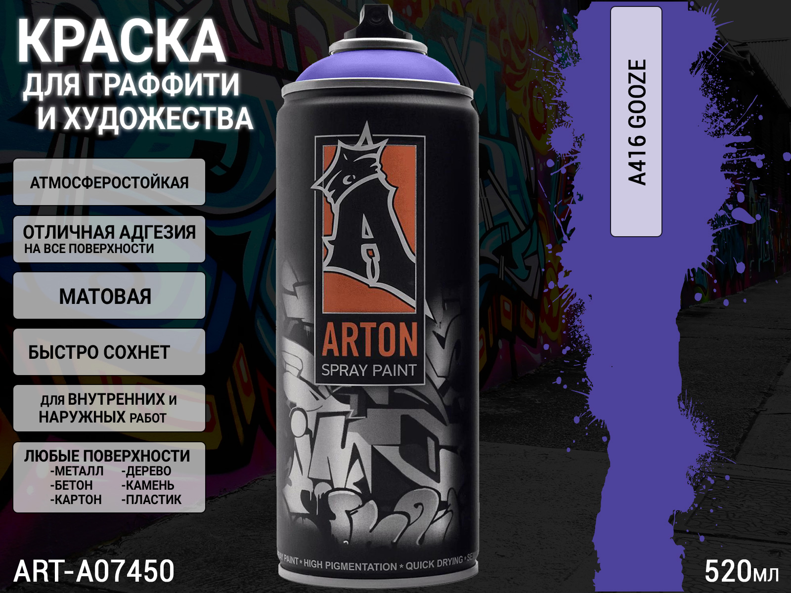 1. A416 Gooze краска для граффити аэрозоль ARTON (520мл)1