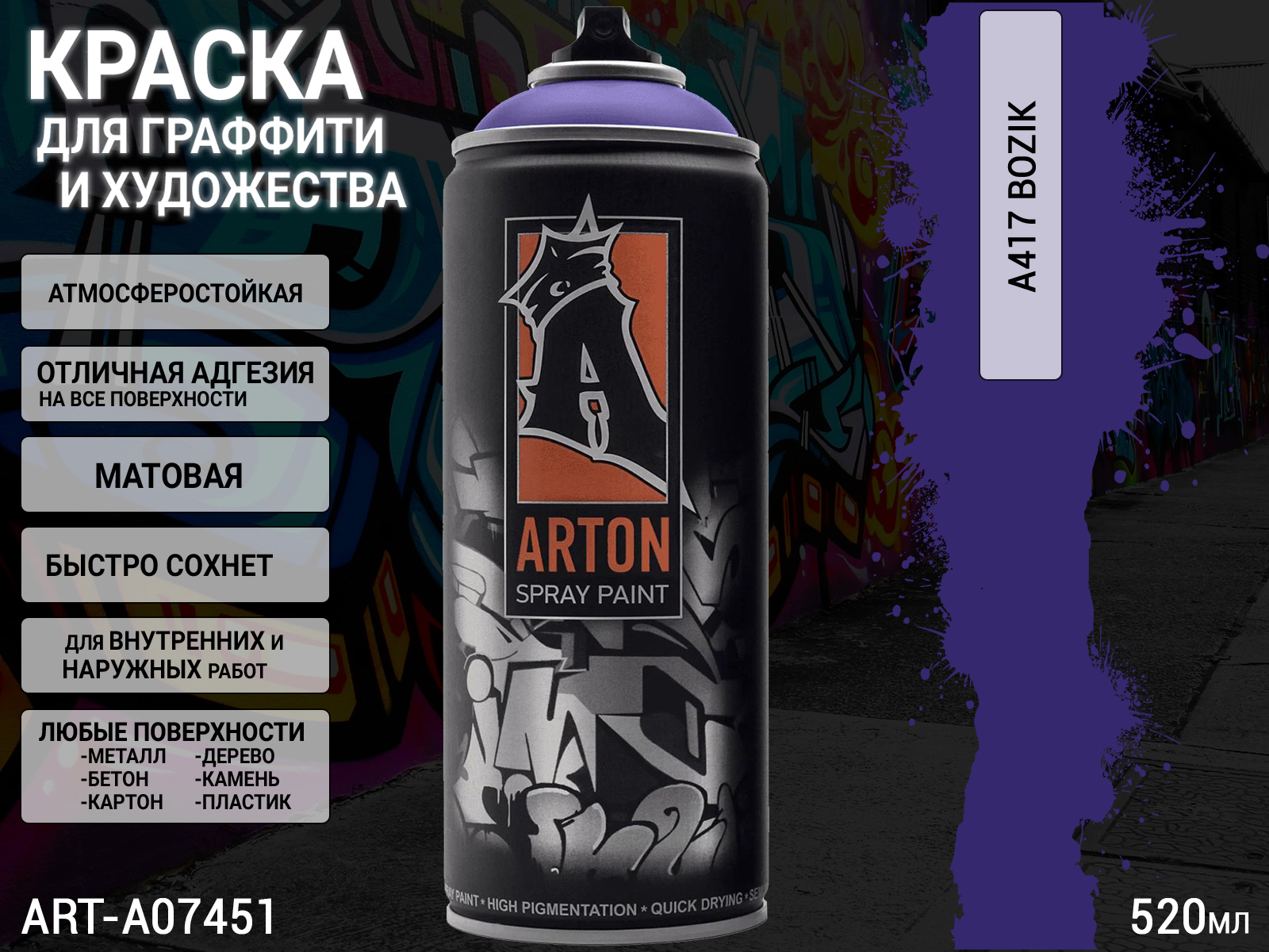 A417 Bozik краска для граффити аэрозоль ARTON (520мл)