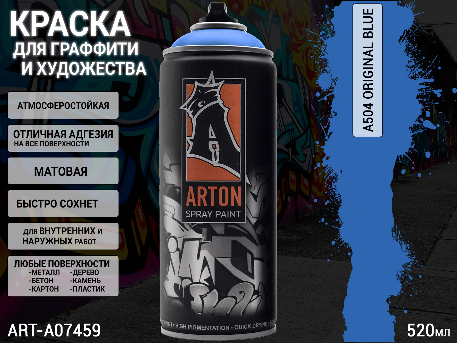 1. A504 оригинальный синий/ORIGINAL BLUE краска для граффити аэрозоль ARTON (520мл)1