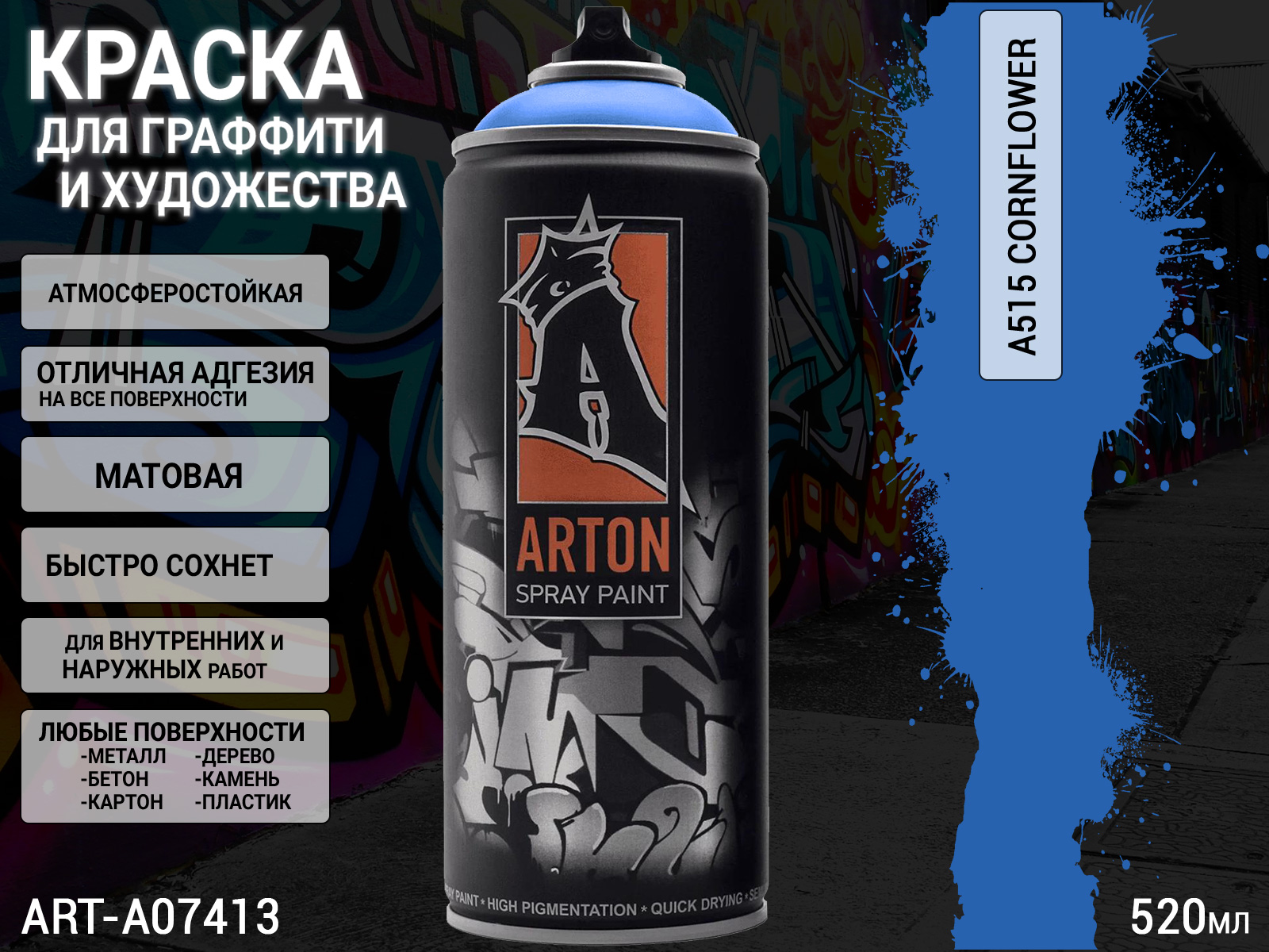 1. A515 василек/CORNFLOWER краска для граффити аэрозоль ARTON (520мл)1