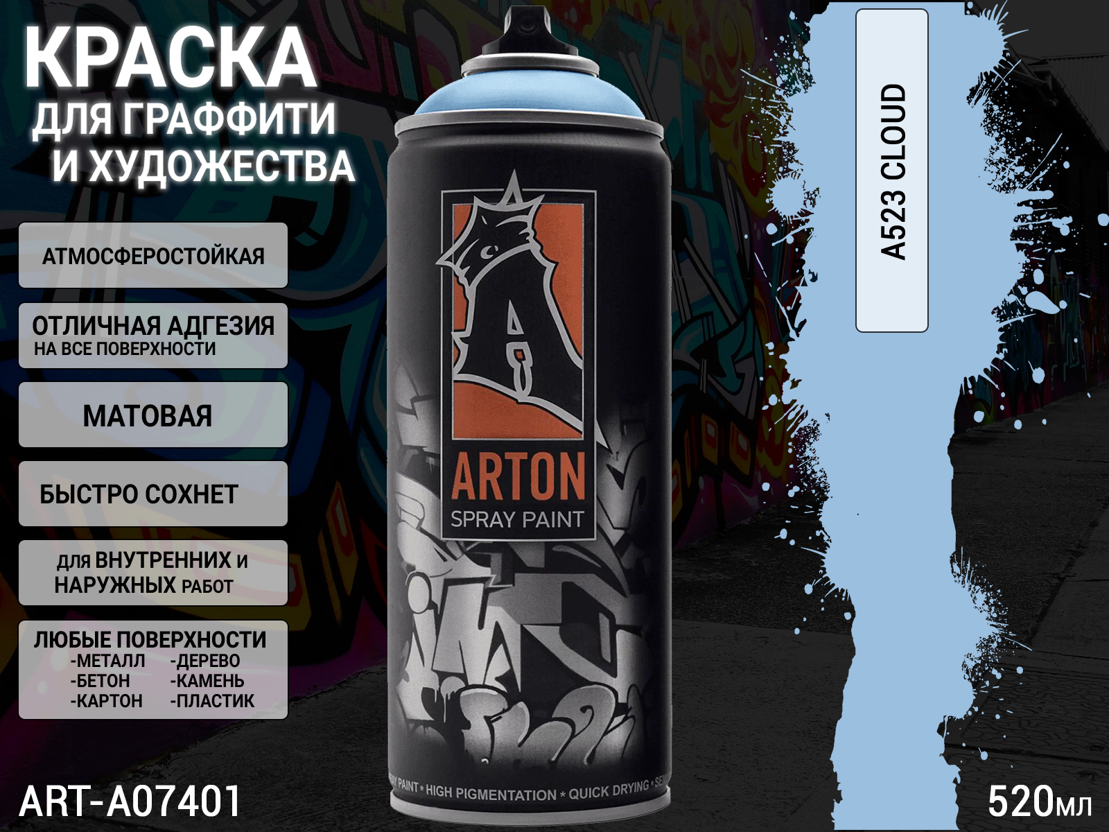1. A523 облако/CLOUD краска для граффити аэрозоль ARTON (520мл)1