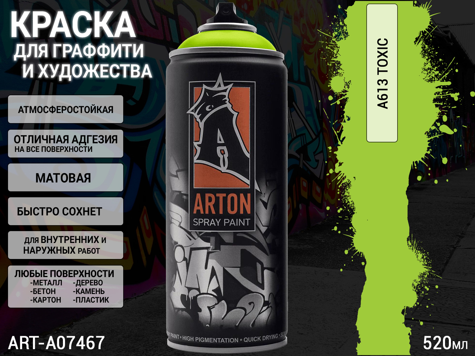 A613 токсичный/TOXIC краска для граффити аэрозоль ARTON (520мл)