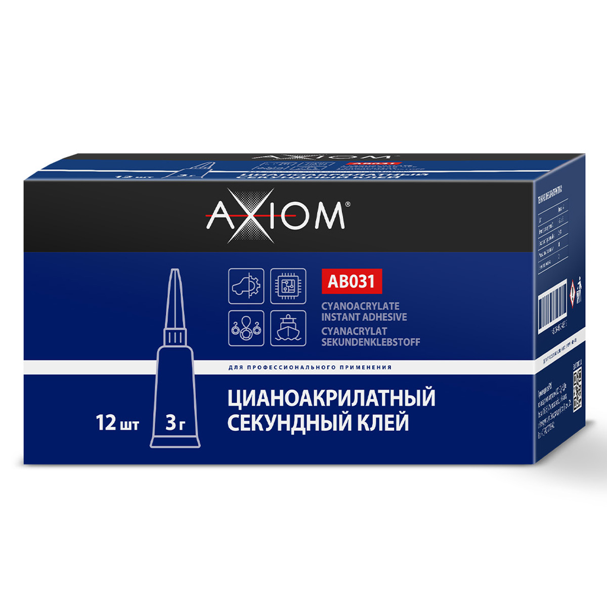 Высококачественный профессиональный цианоакрилатный клей (секундный) AXIOM (AB031) предназначенный для быстрого и прочного склеивания изделий из различных видов пластика, резины, некоторых металлов, а также полистирола, кожи и других материалов. Однокомпонентный, обладает низкой вязкостью. Идеально подходит для резиновых уплотнителей, деталей и молдингов из ПВХ пластика. Склеивает мгновенно.