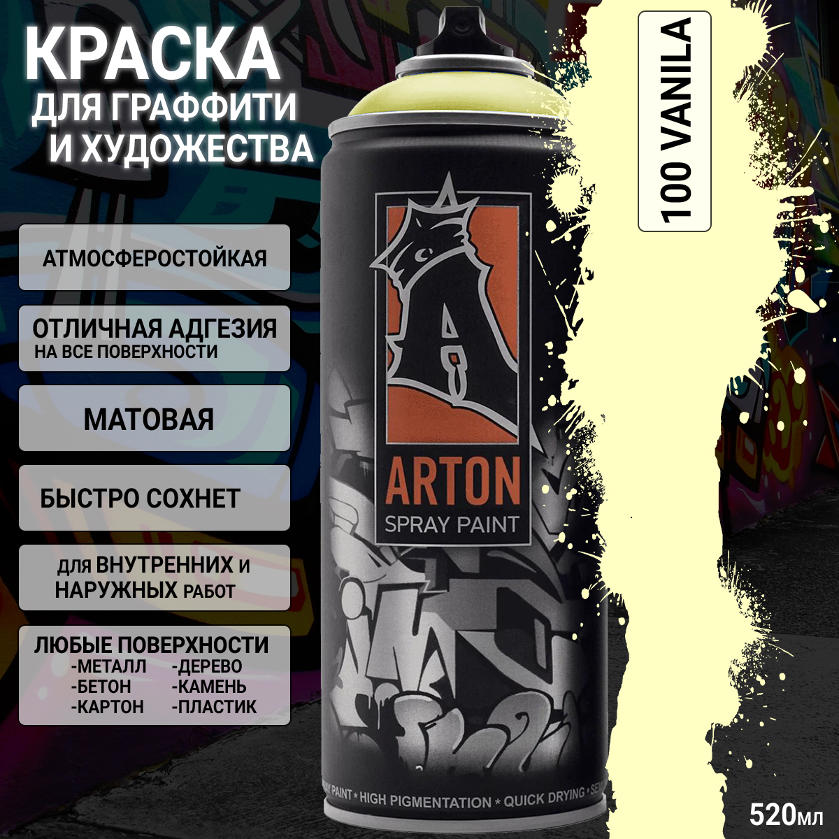 1. A100 ваниль/VANILA краска для граффити аэрозоль ARTON (520мл)1