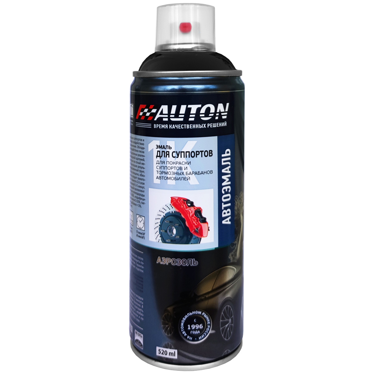 Аэрозольная эмаль для суппортов АВТОН - качественная быстросохнущая алкидная эмаль предназначена покраски суппортов и тормозных барабанов автомобилей. Эмаль устойчива к воздействию высоких температур, возникающих при торможении. Обладает повышенной стойкостью к абразивному воздействию песка и камней, коррозионному влиянию воды и дорожных реагентов. Эмаль обладает прекрасным блеском и превосходной адгезией.
