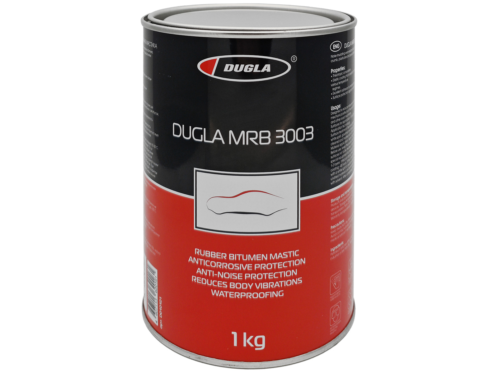 Антикоррозионная мастика резинобитумная Dugla MRB 3003 (D010101) - шумоизоляционный износостойкий состав черного цвета на основе нефтяного битума, резиновой крошки, пластификаторов и специальных наполнителей, с содержанием ингибиторов коррозии. Материал используется для защиты днища и колесных арок автомобиля от механического и химического воздействия окружающей среды. Продукт полностью готов к применению.