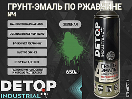 Грунт-эмаль №4 по ржавчине зеленая RAL-6001 "3 в 1" INDUSTRIAL DETOP (аэрозоль, 650мл)