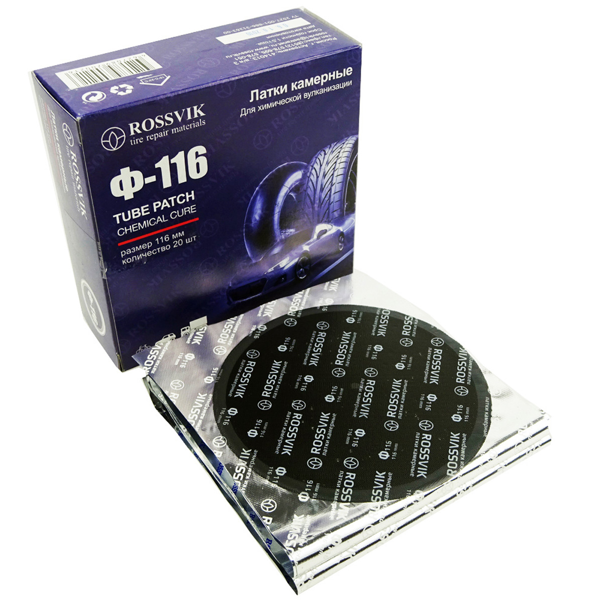 Двухслойная заплатка Ф-116 ROSSVIK применяется для ремонта пневматических камер любых размеров всех видов транспорта: велосипедов, мотоциклов, легковых и грузовых автомобилей, сельскохозяйственной техники.