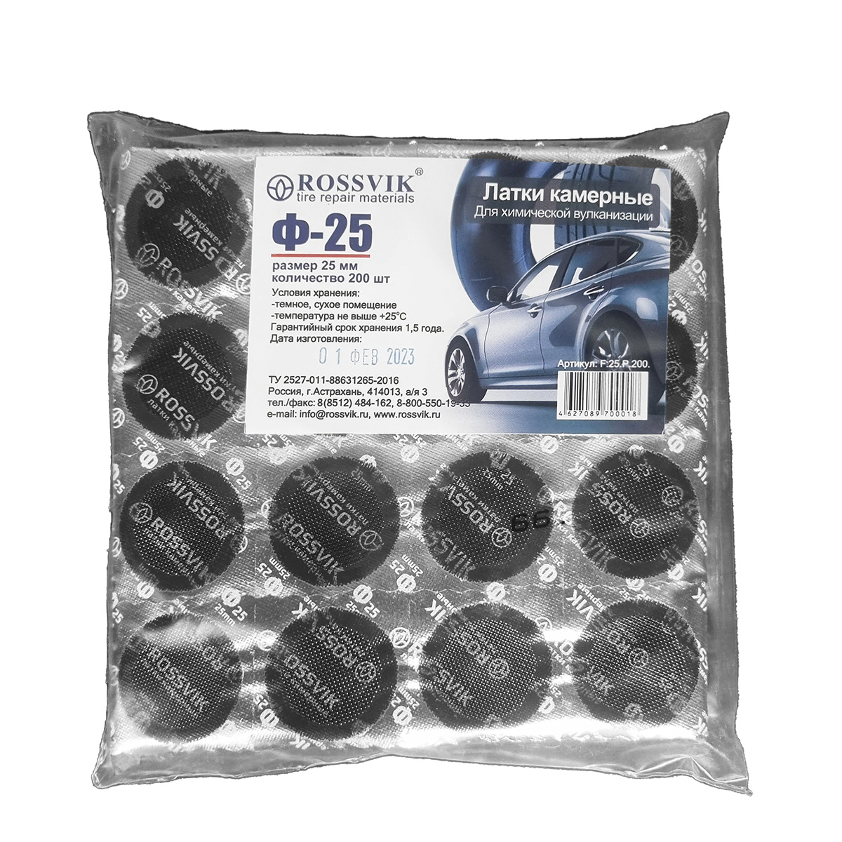 Двухслойная заплатка Ф-25 ROSSVIK применяется для ремонта пневматических камер любых размеров всех видов транспорта: велосипедов, мотоциклов, легковых и грузовых автомобилей, сельскохозяйственной техники.