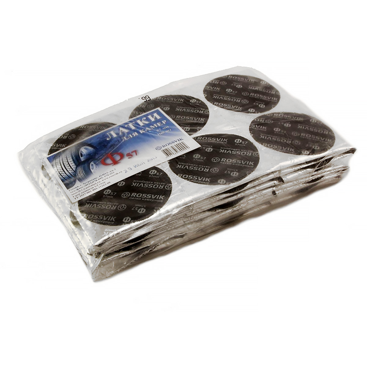 Двухслойная заплатка Ф-57 ROSSVIK применяется для ремонта пневматических камер любых размеров всех видов транспорта: велосипедов, мотоциклов, легковых и грузовых автомобилей, сельскохозяйственной техники.