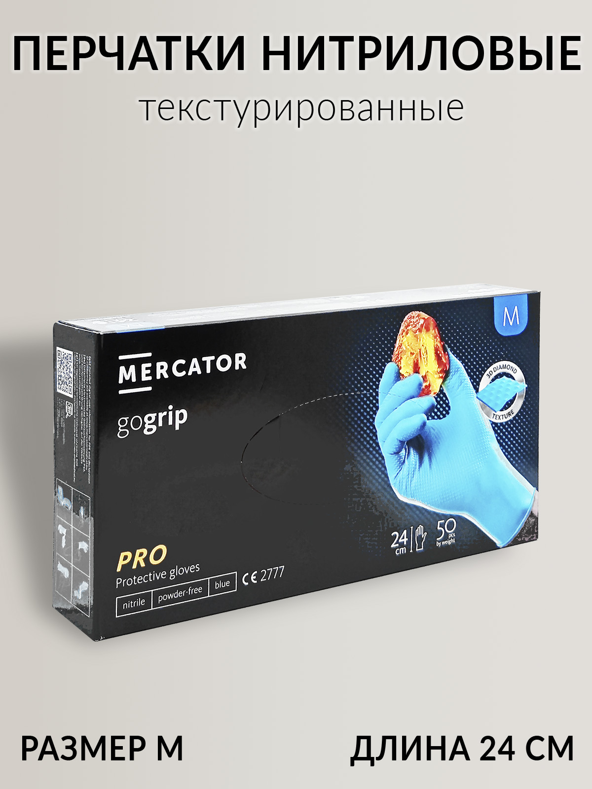 1. перчатки нитриловые синие M текстурированные GOGRIP MERCATOR (1шт)1