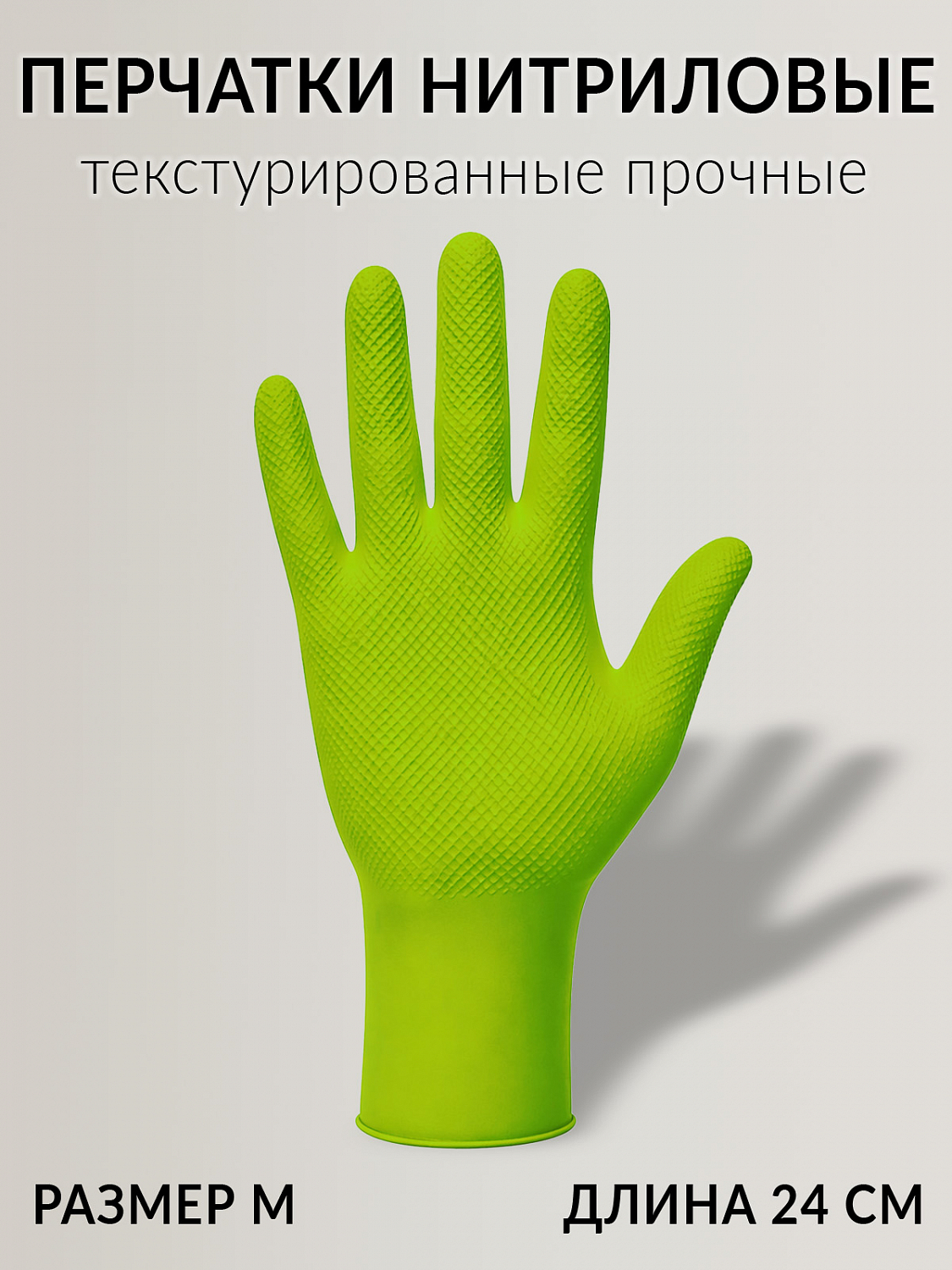 Перчатки нитриловые зеленые M текстурированные прочные GOGRIP MERCATOR (1шт)