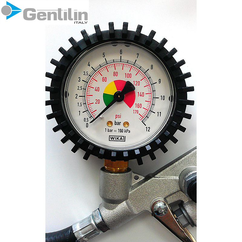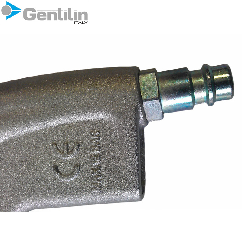 Пистолет для подкачки GUN2 GENTILIN (Италия) с боковым расположением манометра, предназначенный для накачки автомобильных колёс, имеет фронтальное расположение манометра. При подключении через шланг к источнику сжатого воздуха готов к работе.