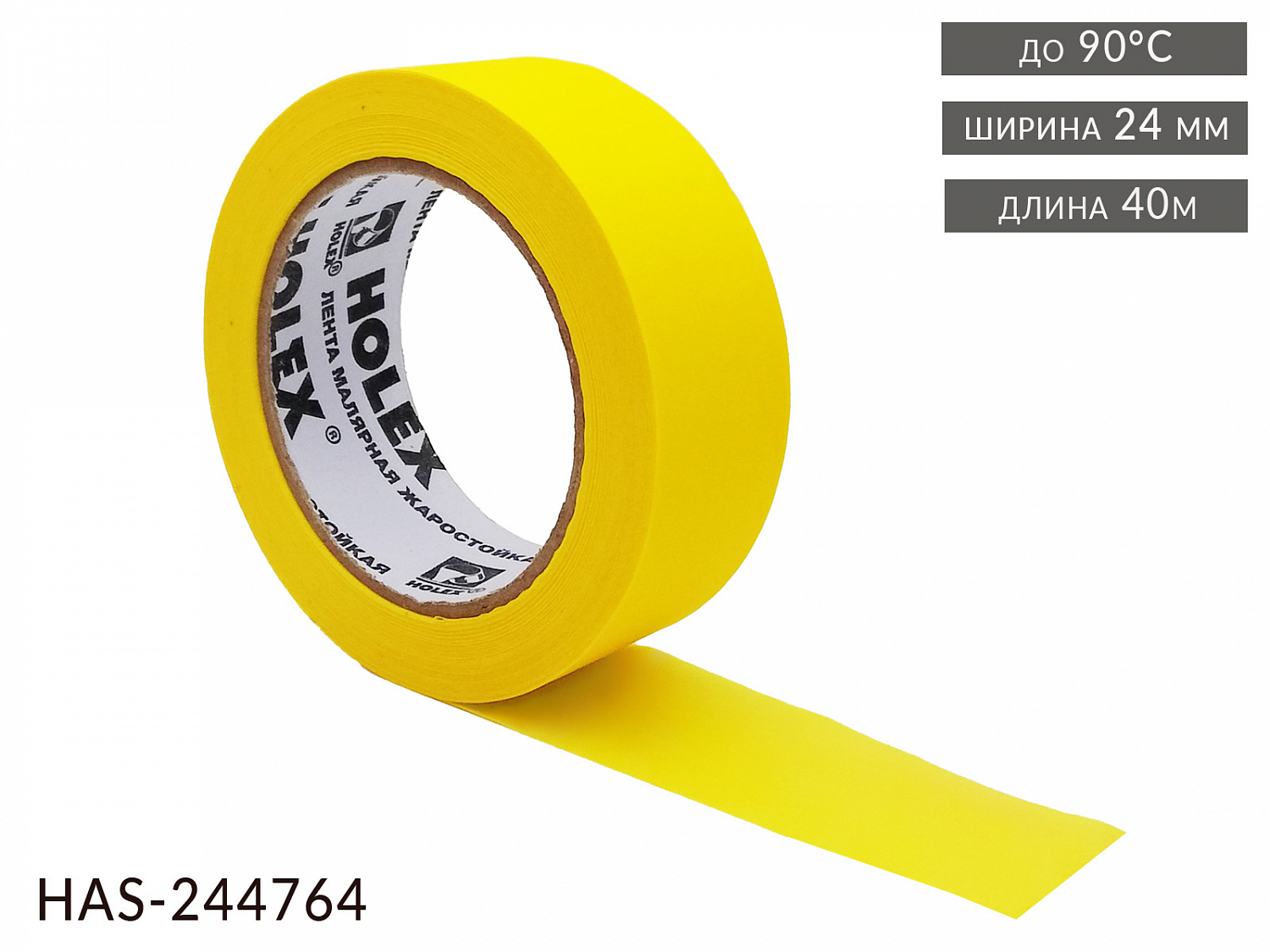 Малярная лента применяется HOLEX (HAS-244764) для маскировочной оклейки в автомобильной, станкостроительной и других отраслях промышленности при проведении отделочных и лакокрасочных работ, в том числе, при покраске в термокамерах. Так же могут применяться в бытовых условиях для локальной защиты поверхностей при окраске, временной герметизации швов и трещин, склеивании различных поверхностей. Обладает хорошей и стойкой адгезией. При удалении безопасна для старого покрытия и последующего окрашивания.