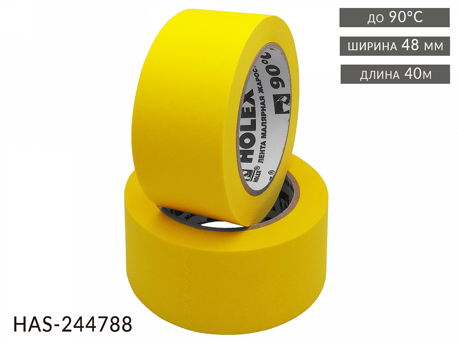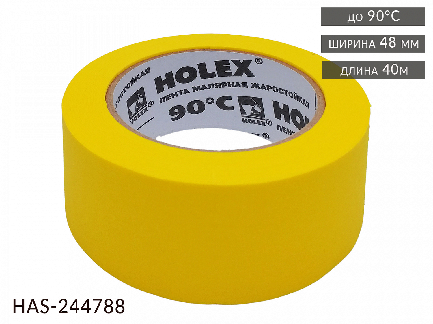 Малярная лента применяется HOLEX (HAS-244788) для маскировочной оклейки в автомобильной, станкостроительной и других отраслях промышленности при проведении отделочных и лакокрасочных работ, в том числе, при покраске в термокамерах. Так же могут применяться в бытовых условиях для локальной защиты поверхностей при окраске, временной герметизации швов и трещин, склеивании различных поверхностей. Обладает хорошей и стойкой адгезией. При удалении безопасна для старого покрытия и последующего окрашивания.
