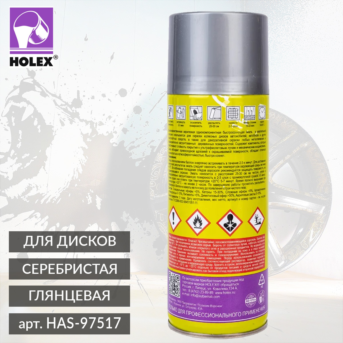 1. эмаль-аэрозоль ДЛЯ ДИСКОВ серебристая глянцевая HOLEX (520мл)1