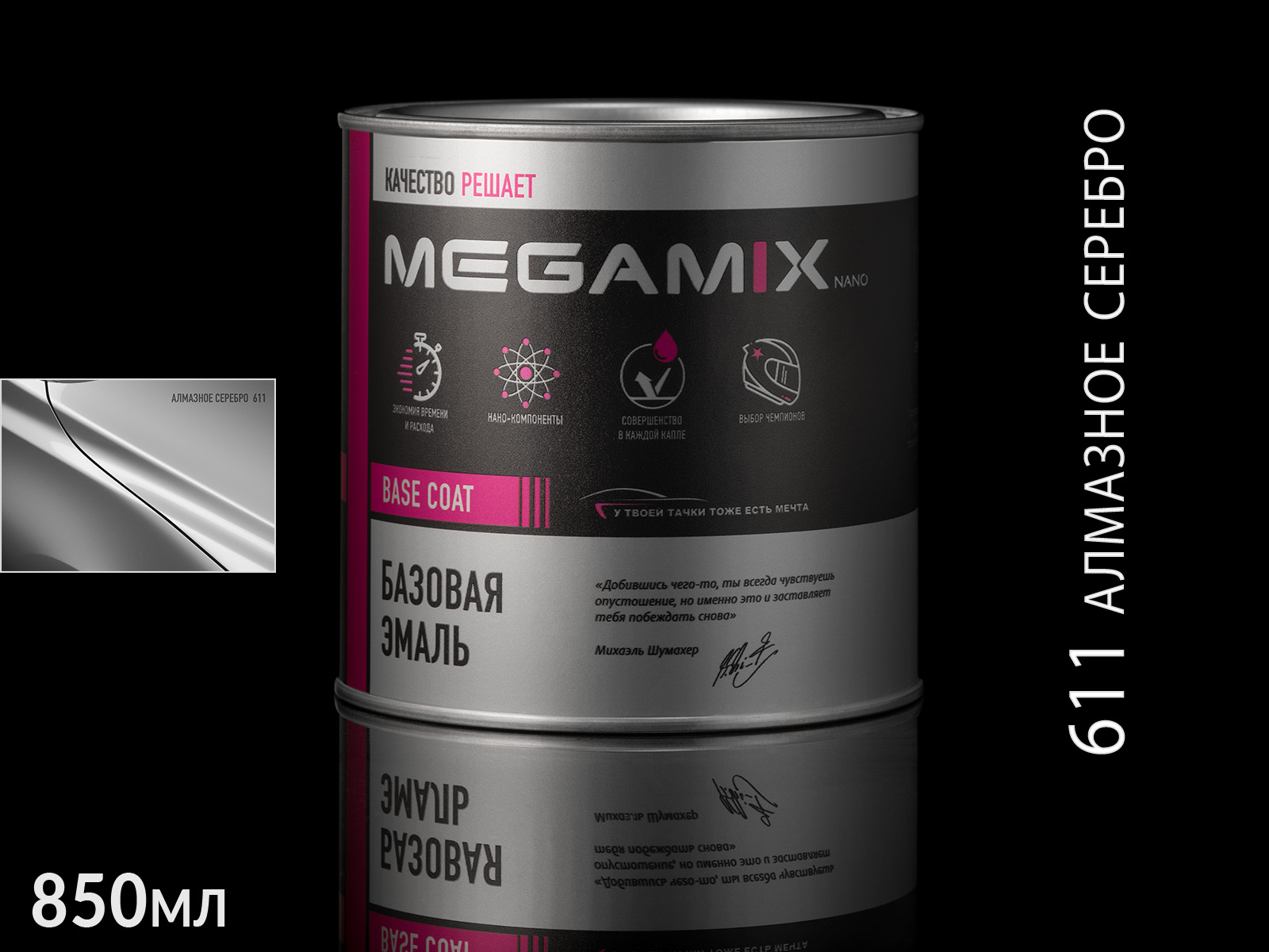 611 алмазное серебро металлик автоэмаль MEGAMIX (0,85л)