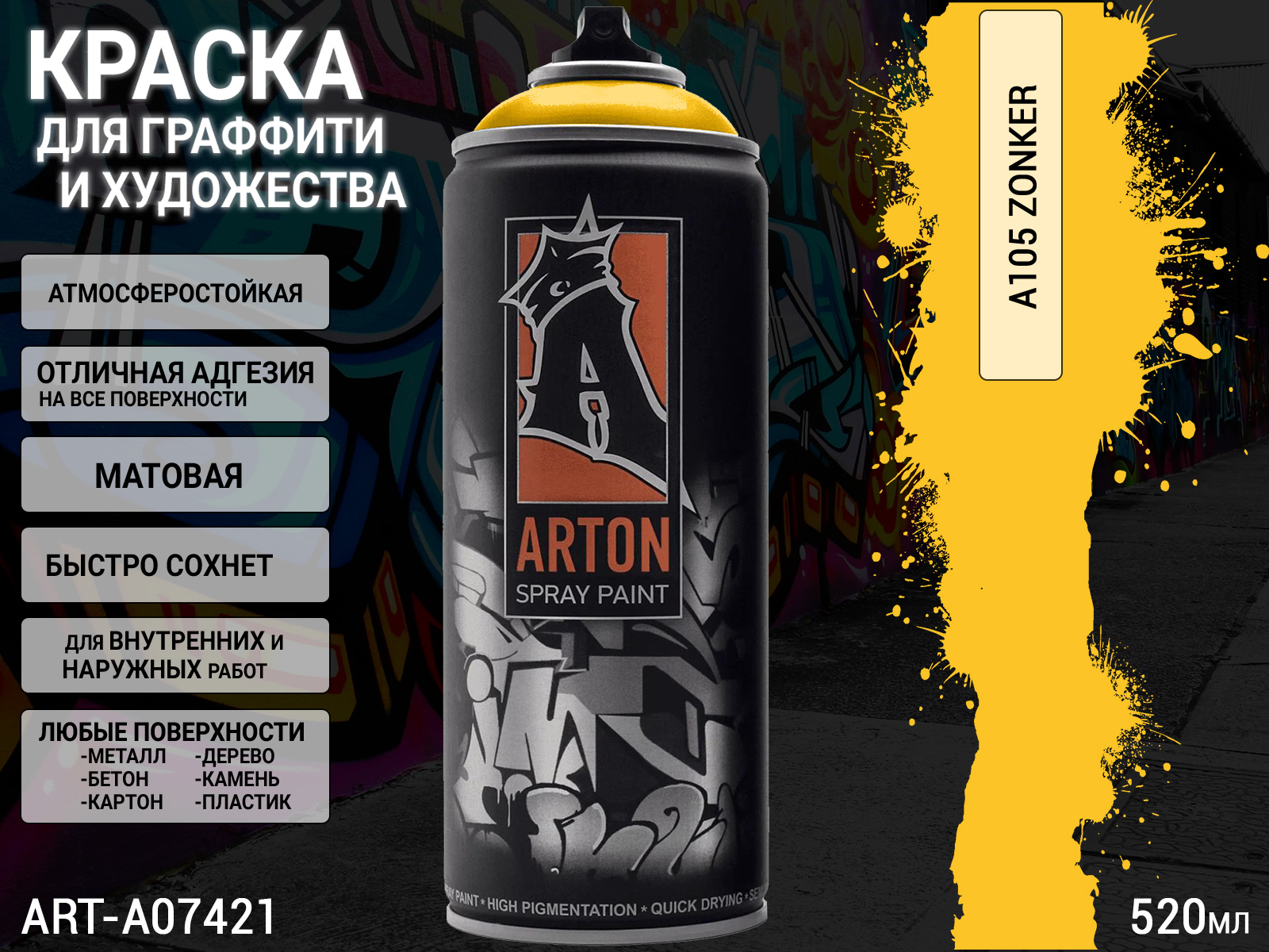 A105 зонкер/ZONKER краска для граффити аэрозоль ARTON (520мл)