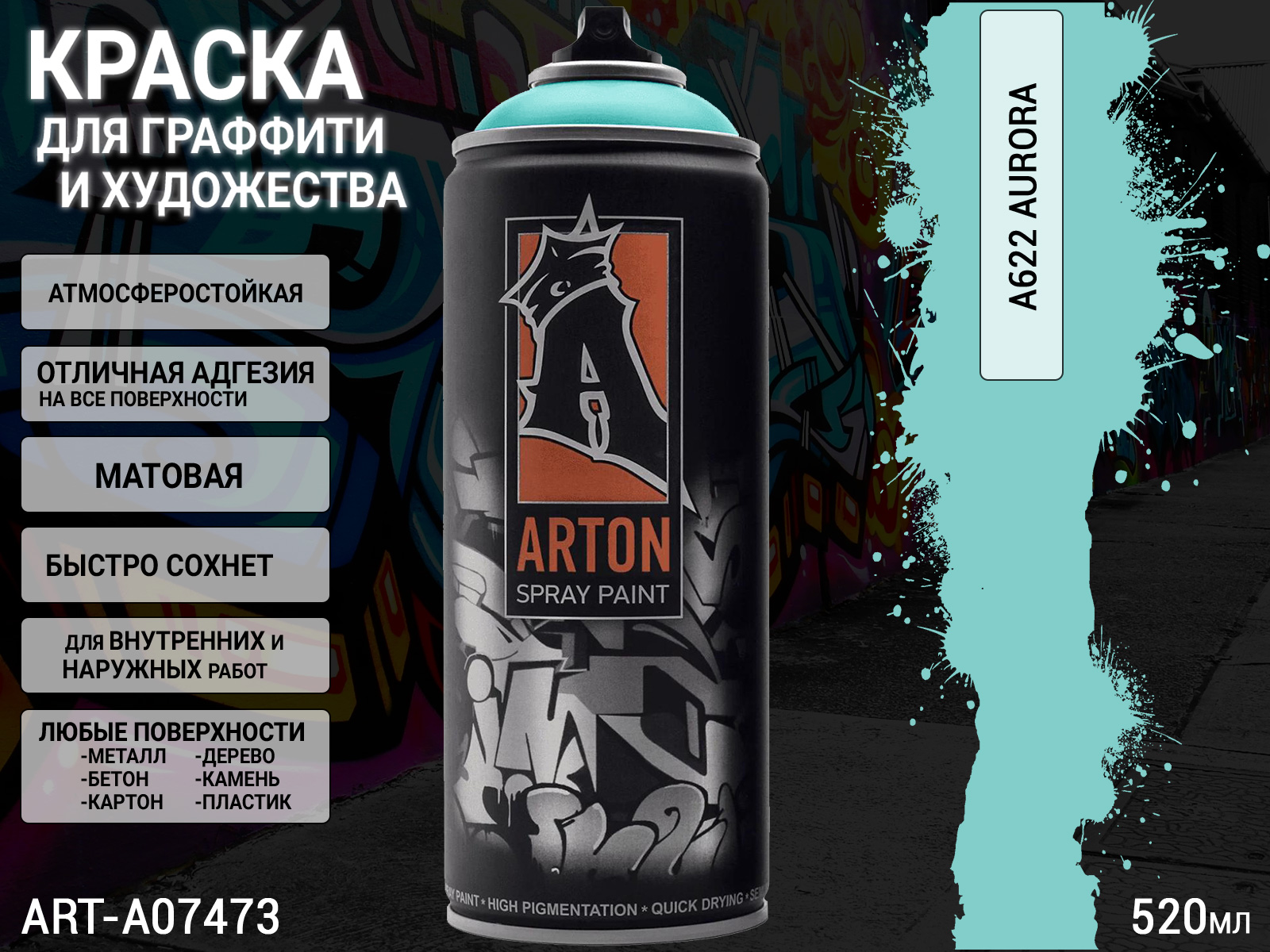 A622 аврора/AURORA краска для граффити аэрозоль ARTON (520мл)