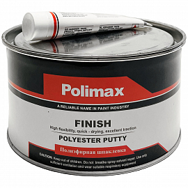 Полиэфирная финишная шпатлевка POLIMAX с высоким качеством и адгезией, быстросохнущая и с отличным шлифованием. Используют для заполнения вмятин и неровностей на поверхности автомобиля. Быстросохнущая финишная шпатлевка обладает отличными адгезионными и шлифовальными свойствами. Шпаклевка Finish Polimax, из-за своей мягкости, используется также вместо нитрошпаклевки.