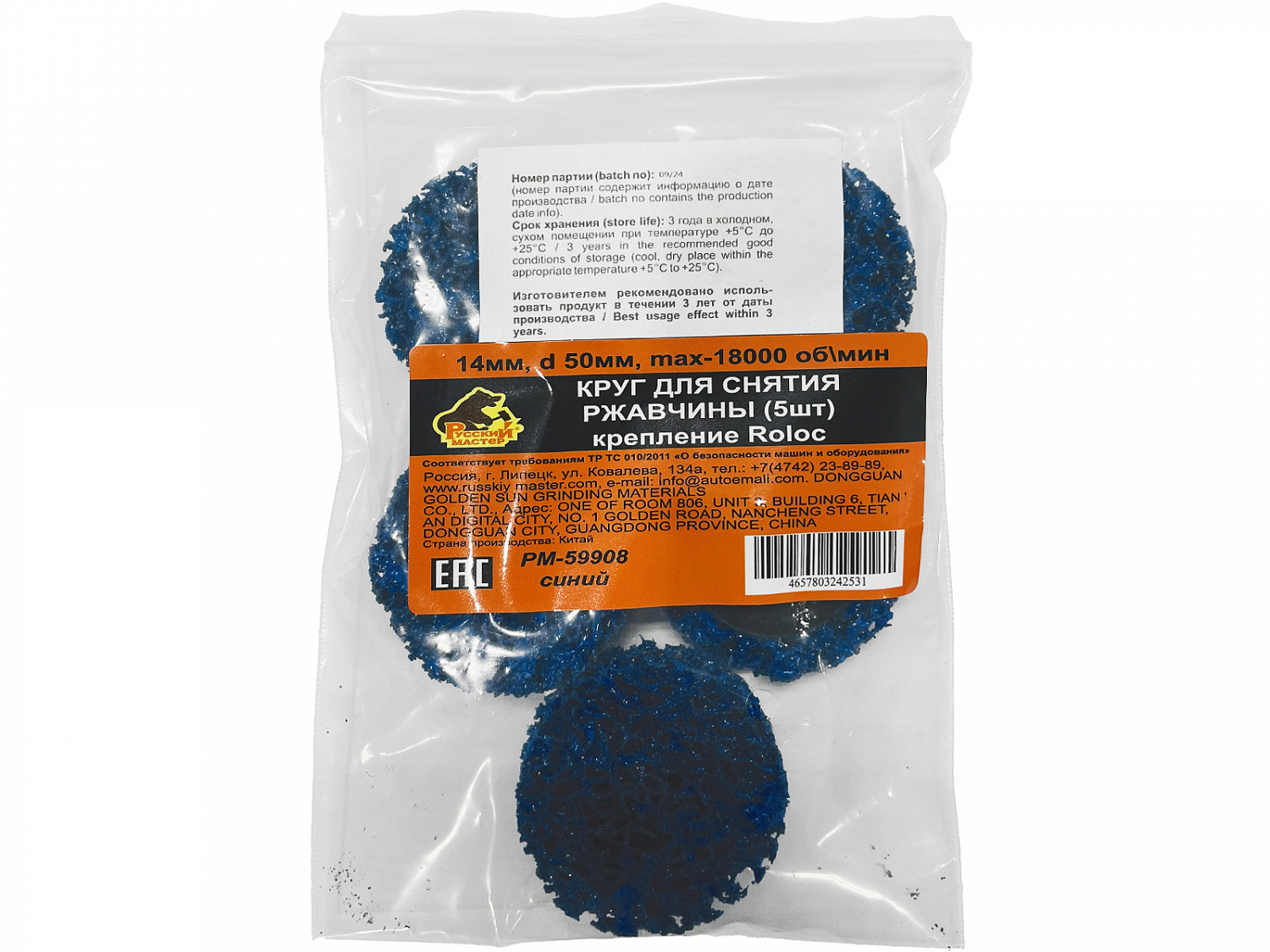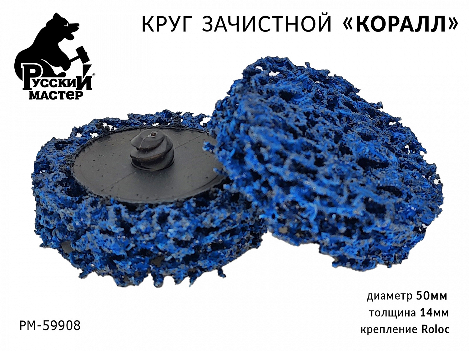 Круг для снятия ржавчины 50мм синий толщина 14мм (крепление Roloc) РУССКИЙ МАСТЕР