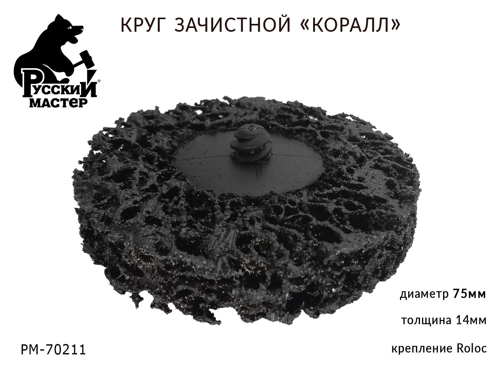 1. круг для снятия ржавчины 75мм чёрный толщина 14мм (крепление Roloc) РУССКИЙ МАСТЕР 1
