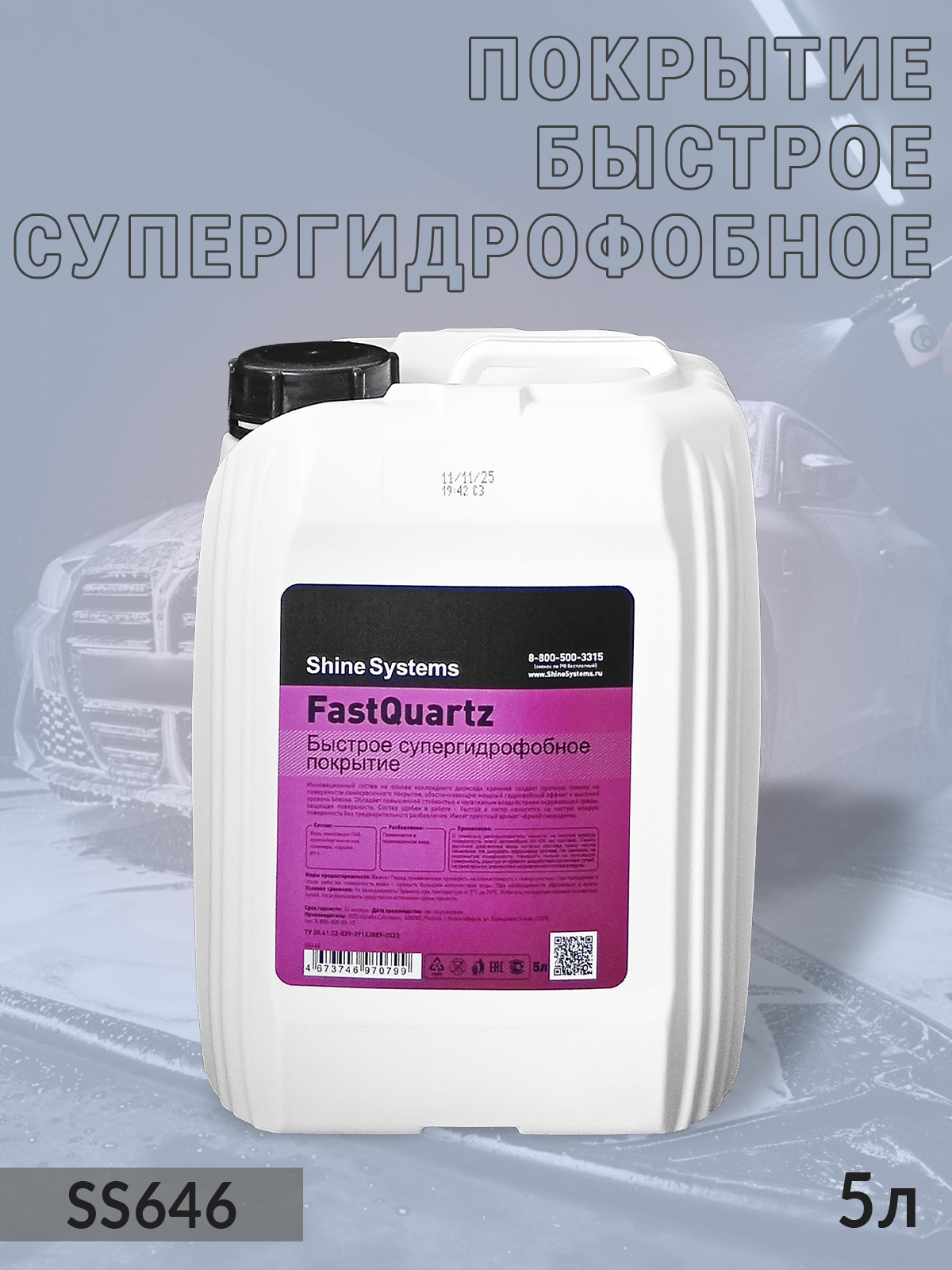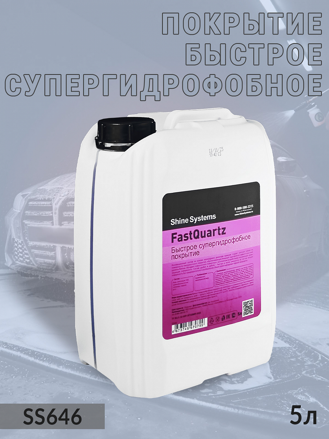 Супергидрофобное быстро покрытие FastQuartz SHINE SYSTEMS (SS646) с уникальной формулой на основе коллоидного диоксида кремния создаёт прочную защитную пленку, которая не только обеспечивает мощный водоотталкивающий эффект, но и придаёт поверхности высокий уровень блеска.