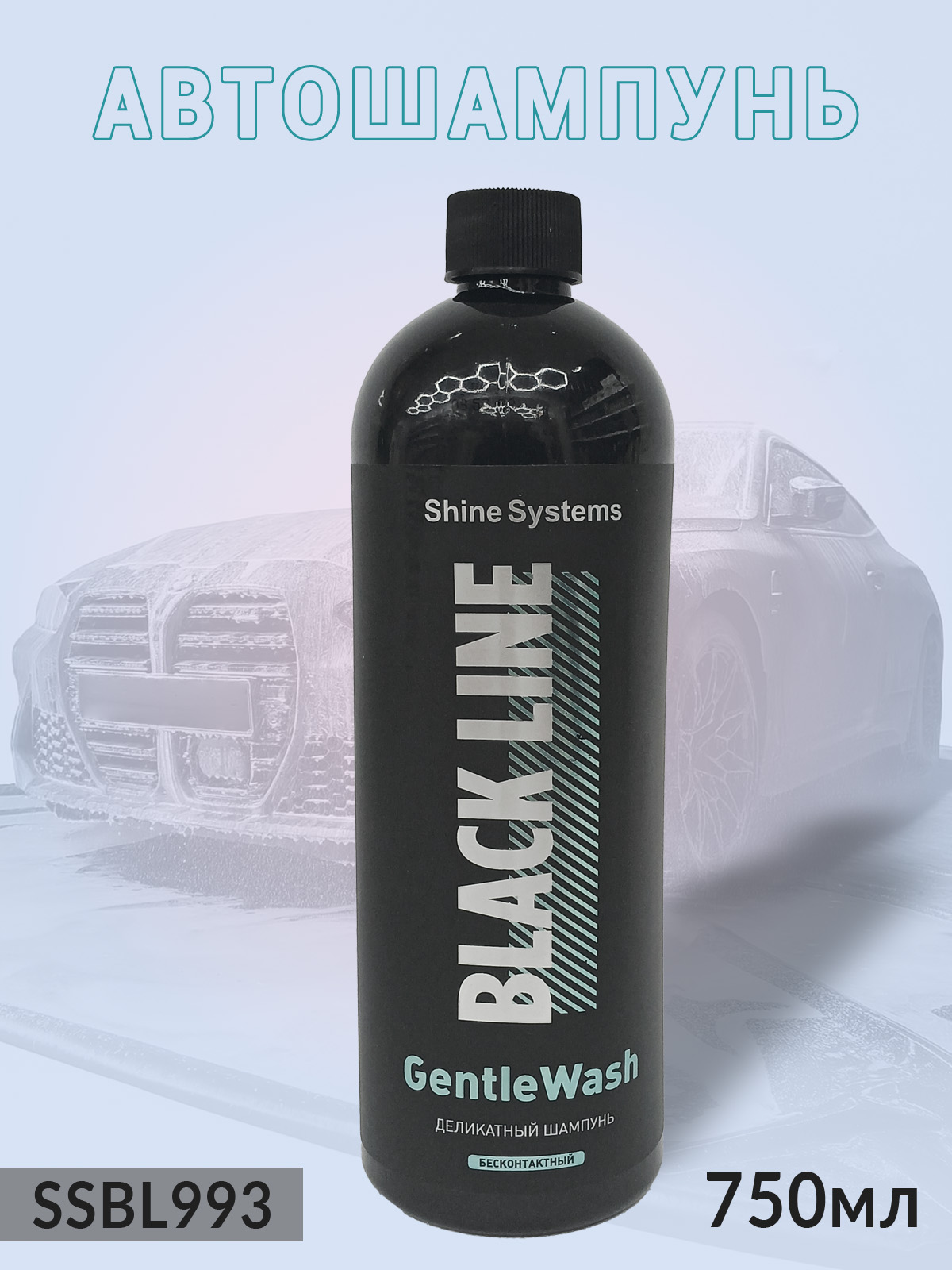 1. автошампунь для бесконтактной мойки BLACK LINE деликатный GentleWash SHINE SYSTEMS (750мл)1